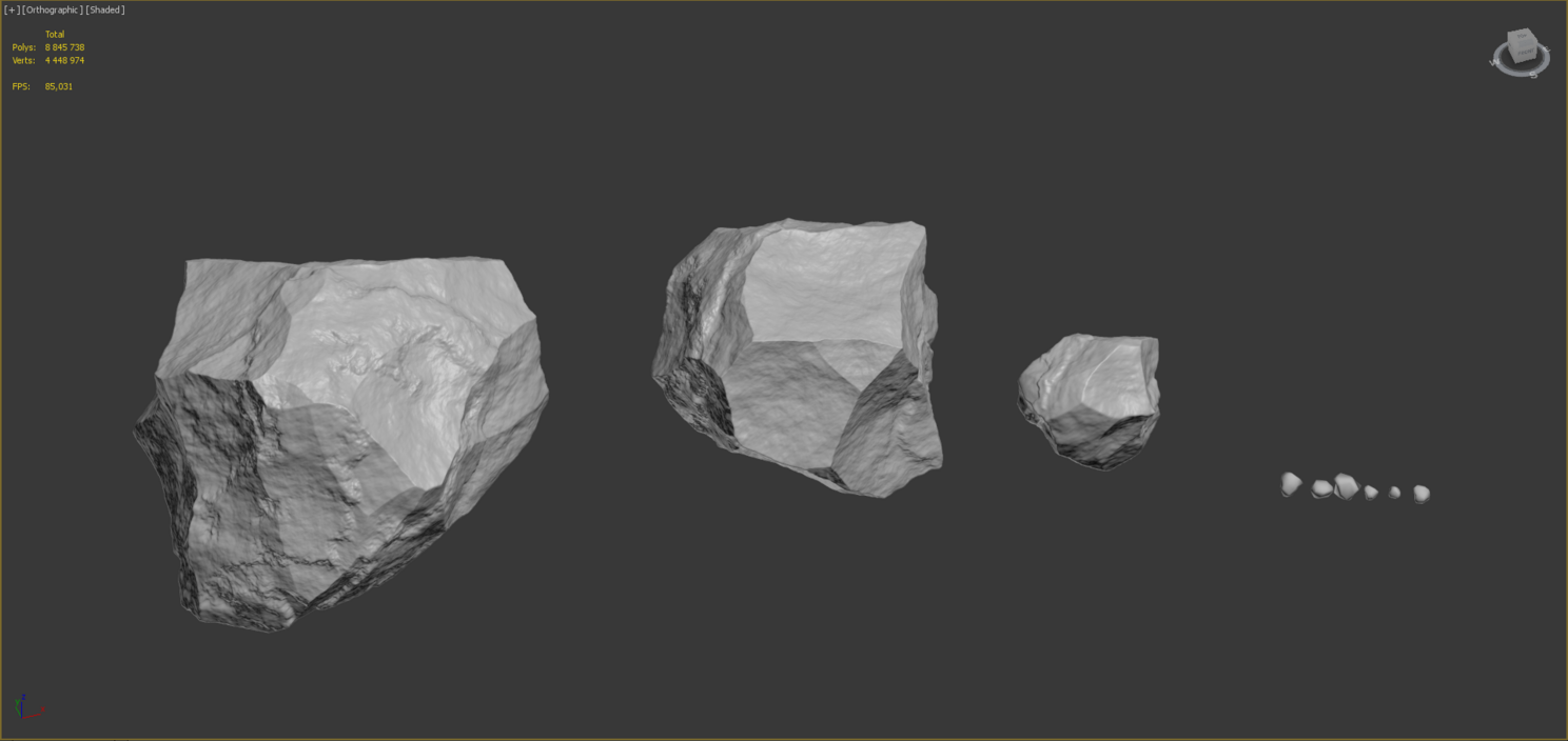 После экспорта как .fbx этого облака точек в 3ds Max получаем такое зрелище: