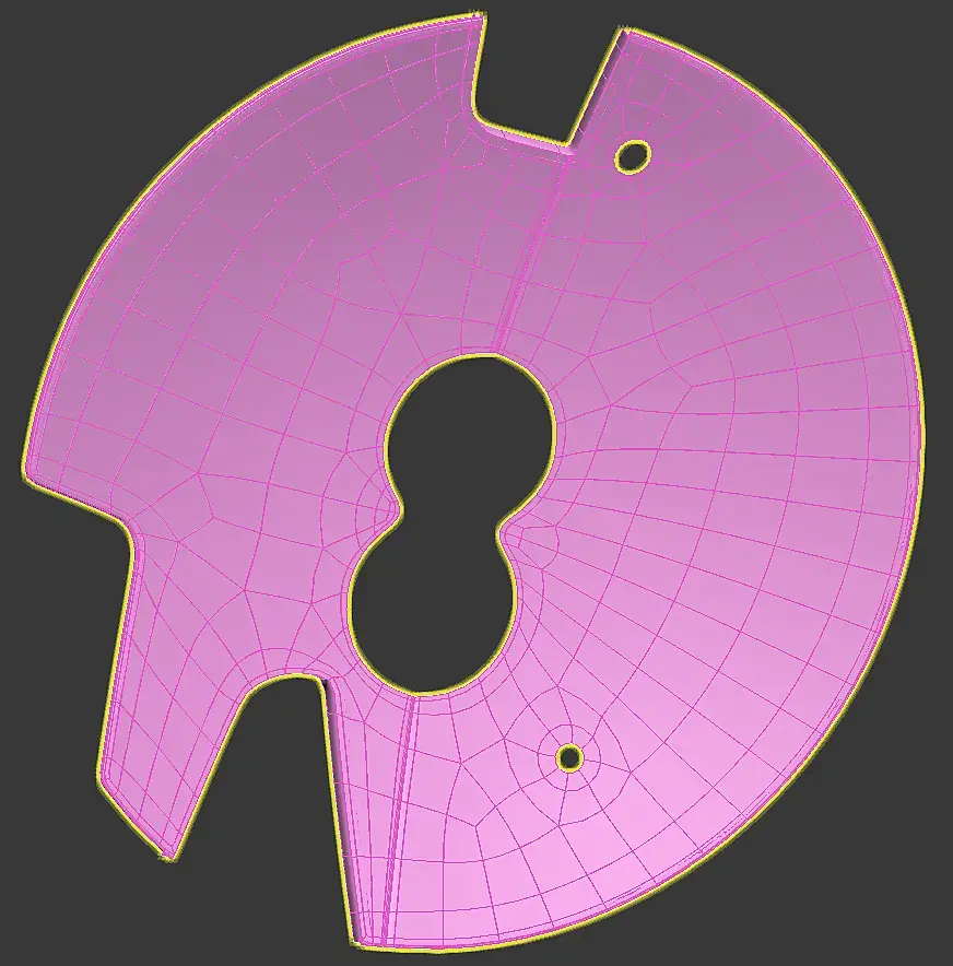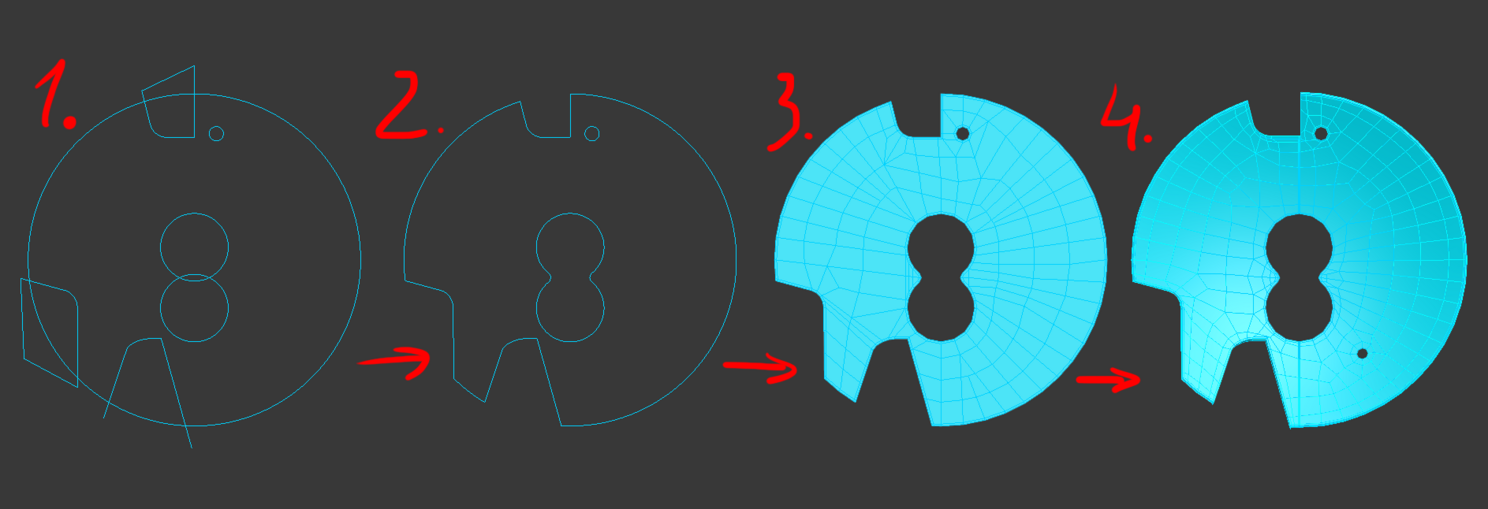 3. Замыкаю все линии (свариваю близлежащие точки). Прежде чем конвертировать в poly, для правильного распределения вершин после преобразования, добавляю еще по 2 точки на эти дуги: