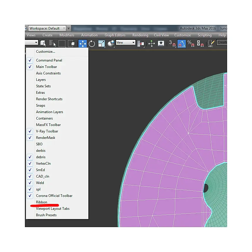 4. Совмещаю эти 2 поверхности, выделяю свою красоту, захожу в панель Ribbon (Если её у вас нет, тыкаем правой кнопкой мыши в пустое место на главной панели)