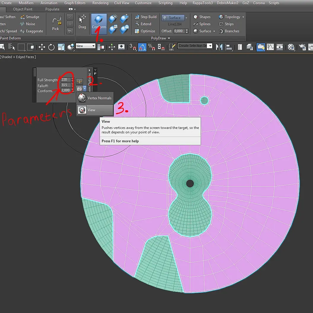 Далее кистью Relax делаю сетку более равномерной. Получаю идеальную поверхность: