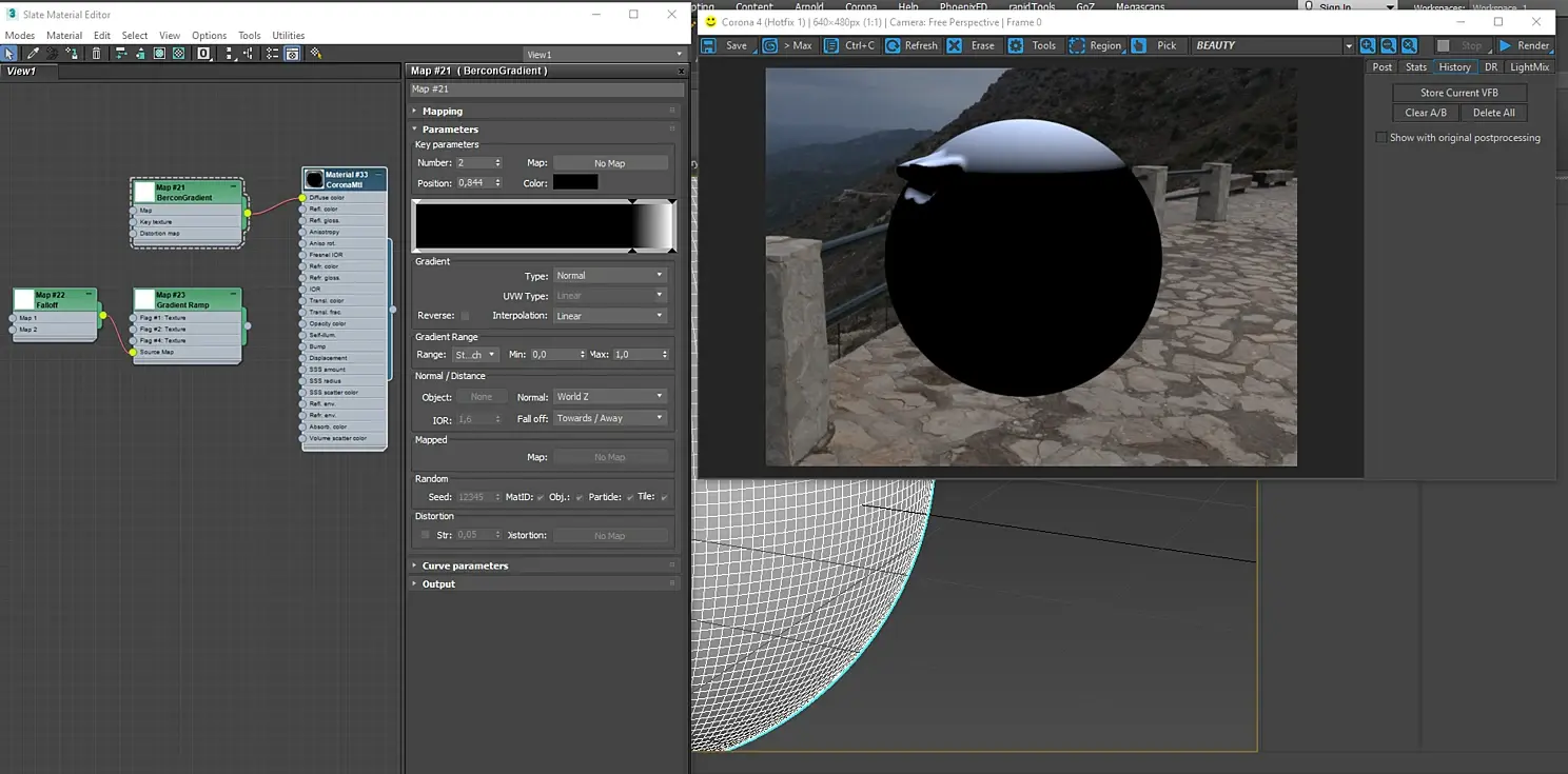 Вообще bercongradient очень сильная карта, которая может заменить falloff map и gradient ramp, но не все ее функции работают корректно с короной.