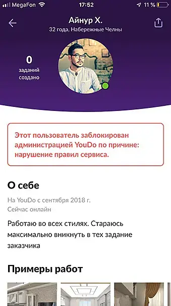 Деньги я отправила, работаем не впервые, вроде не подводил. И вот тут началось веселье. Начиная с 14 и вплоть до 18 он мне морочил голову, то картинки готовятся, то винда полетела, то вот-вот и снова сутки тишины. Пока мы ждали картинки, я не знаю почему, но решила посмотреть что там происходит у него на YouDo. И вот тут, меня ждал настоящий сюрприз.
