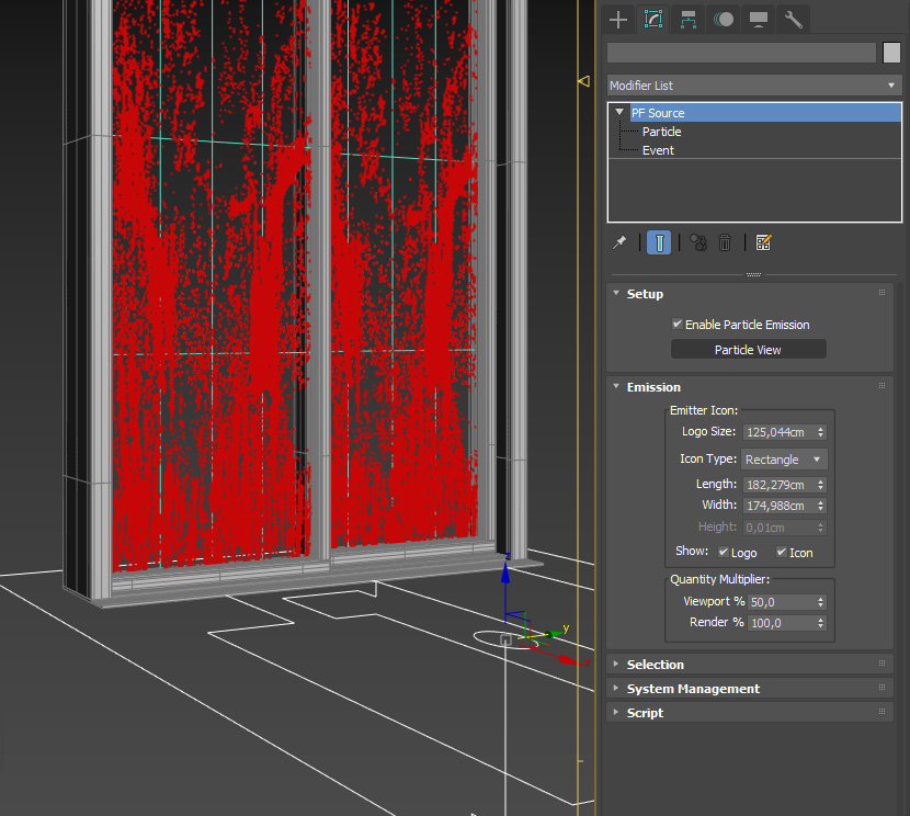 3) Включим галочку Lock on emitter — чтоб частицы не разлетались из нашего PF Source, а генерировались только по стеклу, которое и является эмиттером.
