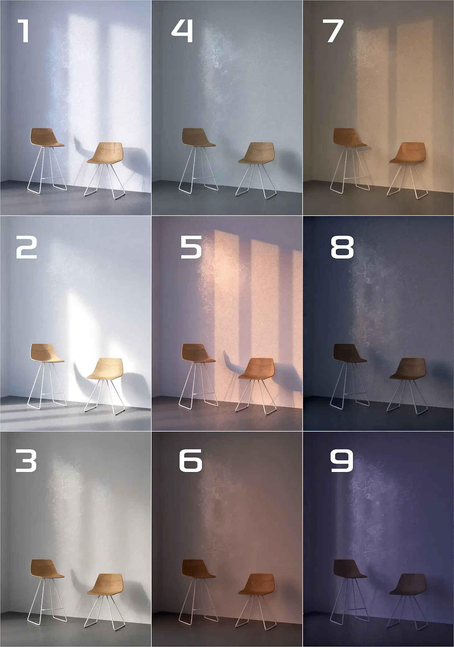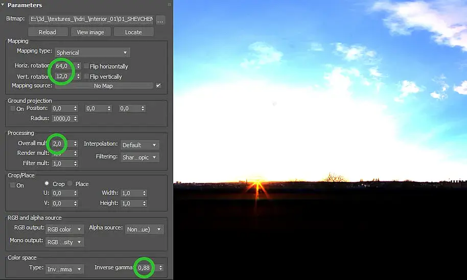 * Я использовал карту под номером 5. Немного покрутил ее в сцене, пока не нашел нужный мне рисунок света и скорректировал пару параметров.