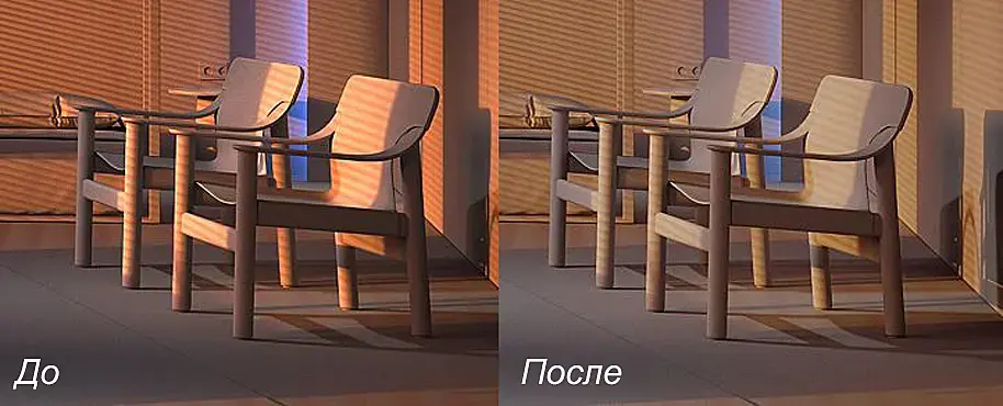 Результат на данном этапе уже сильно зависел от материалов в сцене. Картинка выше была сделана для наглядности.