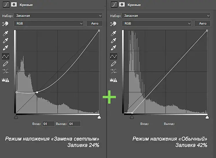 Часто бывает, что процентовку заливки меняю, сами кривые у меня всегда в одном и том же виде записаны в "Экшен" в фотошопе.