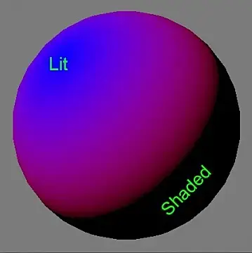 Те грани, которые будут попадать под тень, получат цвет, отвечающий за Shaded (в нашем случае красный, или стандартный цвет - черный), а те грани, которые будут попадать под прямой свет, получат цвет отвечающий за Lit (в нашем случае синий, или стандартный цвет - белый)