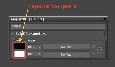 Параметры цвета - стандартно: черный и белый. Два цвета, которые и будут визуально создавать эффект перехода falloff (спада) от одного цвета к другому, исходя от выставленных настроек.