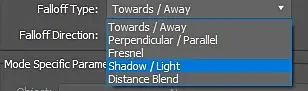 Falloff Type (тип спада) - предоставляет нам возможность выбрать 1 из 5 видов типа.