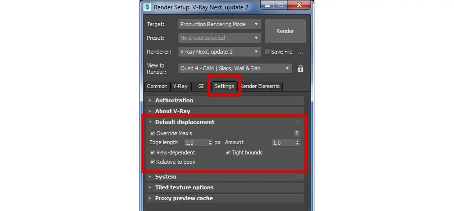 Чем меньше значение Edge Length тем точней и качественней будет рельеф, но за качество нужно будет "платить" большим расходом оперативной памяти - Displacement это очень прожорливое решение. По дефолту стоит 4, этого вполне достаточно для большинства задач.