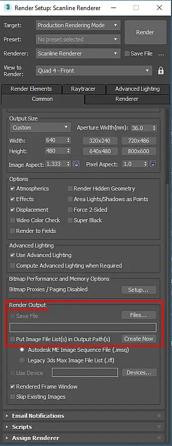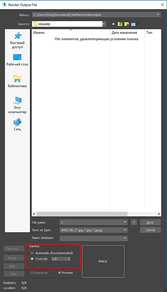 1. Переходим в render settings - F10 - Render Output - и сохраняем наши будущие шедевры в папку(на свой выбор) в настройках указываем гамму нашей картинки (я работаю с 1 поэтому ставлю 1) автоматом гамма сохраняется в 2.2