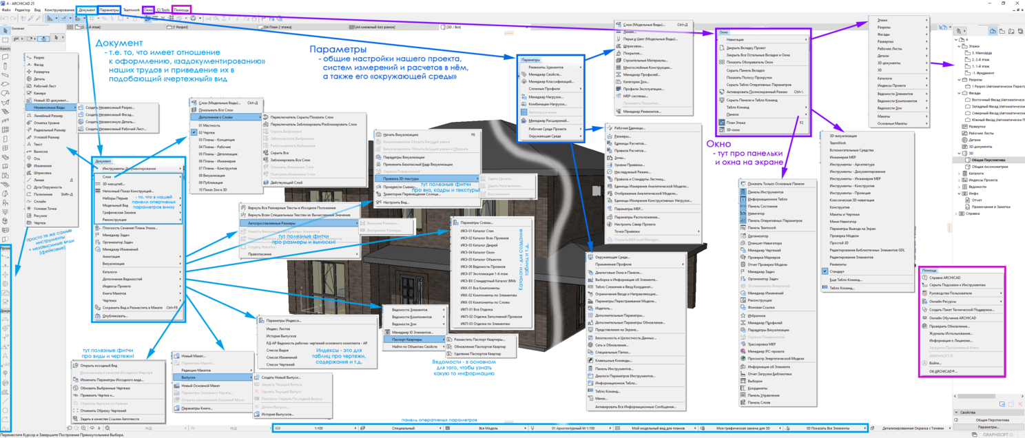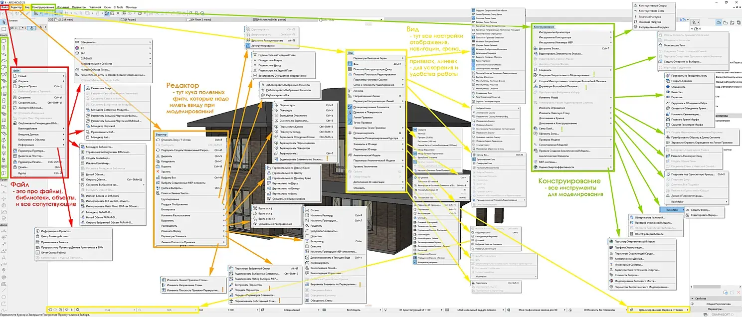 В преддверии того, что я собираюсь передать все свои знания Архикада через короткий экспресс-курс сделал вот такие небольшие наглядные заметки по программе. Может кому нибудь окажут пользу, в целом это как шпаргалки для начинающих :)