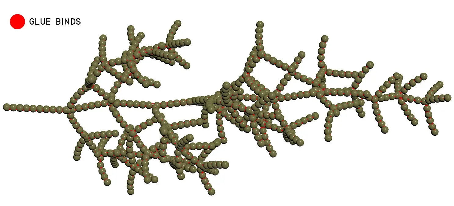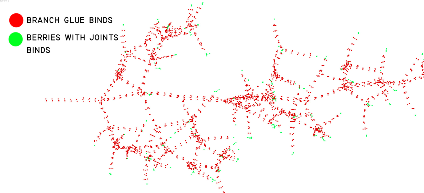 После отправки всех шейпов в главную ноду симуляции, происходит активация "физичности" и еще одно склеивание, только уже локально между основанием ягоды и кончиком ветки. Тут и пригодилось разбиение шейпов по группам.