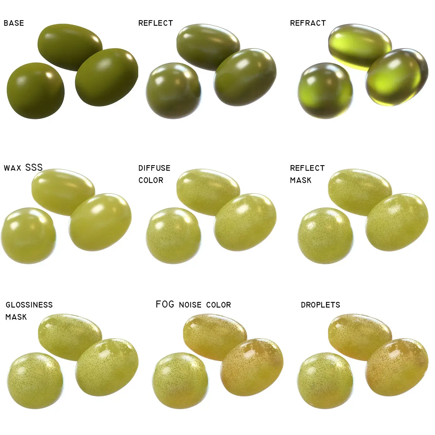 -Ягоды, слегка отличающихся размером и формой. Созданы из бокса и пары модификаторов.