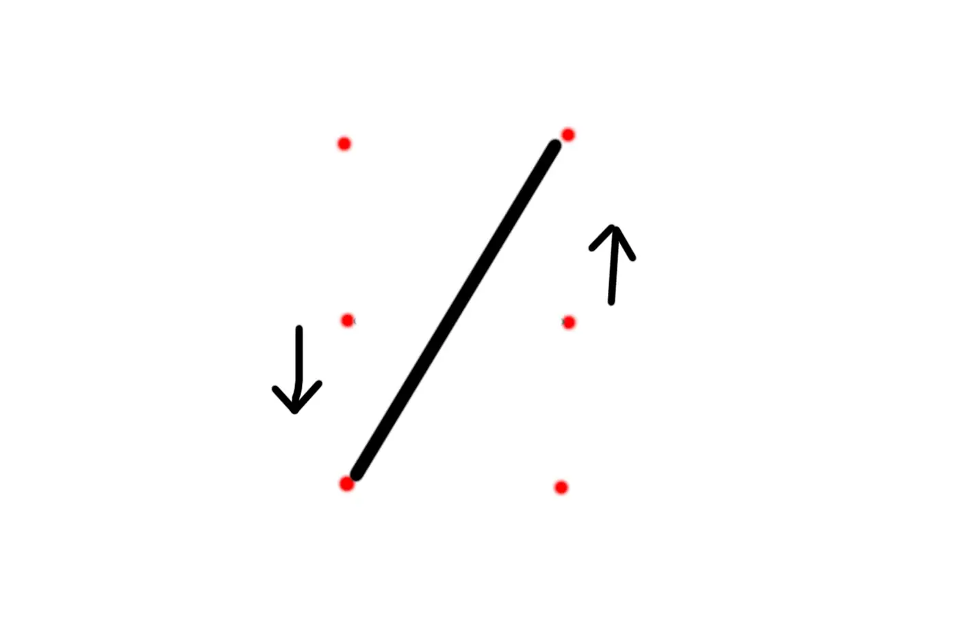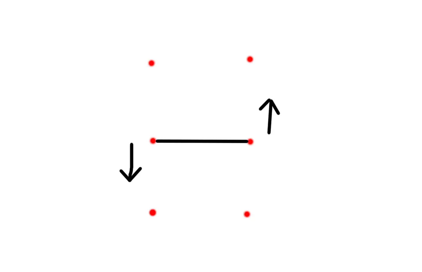 итак мы видим 6 вертексов, отмеченых красным и одно интересующее нас ребро, стрелка обозначает, что делает команда turn edge, она поворачивает edge против часовой стрелки, то есть после выполнения операции наше ребро будет выглядеть так: