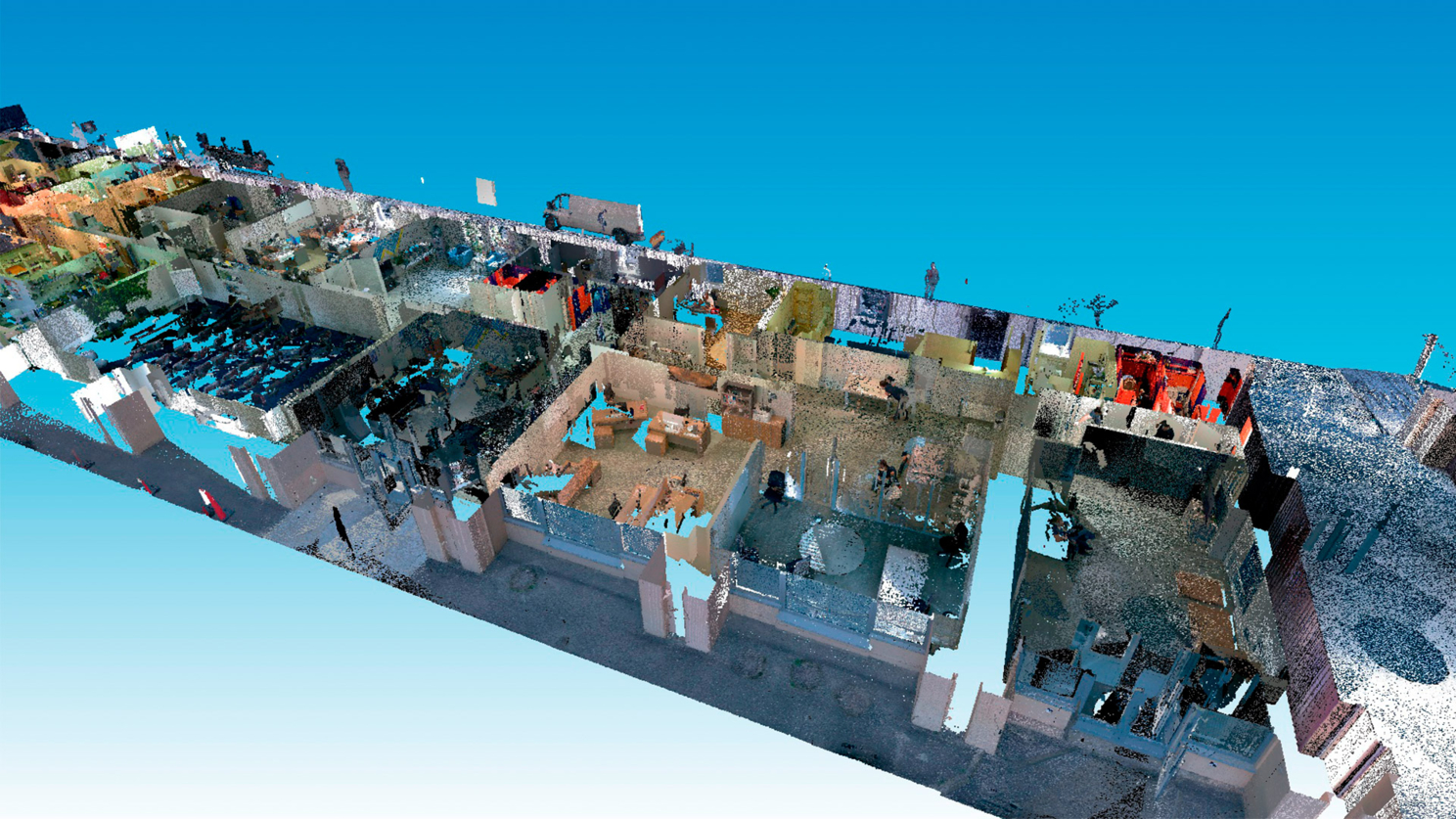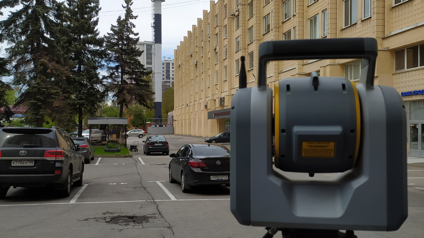 Здание общей площадью более 9000 м2 имеет в длину более 128 м и в высоту более 26м При таких показателях неточности в сборе исходных данных могут существенно отразиться проекте в целом, ведь, например, угловая ошибка в одну десятую градуса может «привезти» отклонение свыше 120 мм на другом конце здания. Чтобы выполнить работу с высокой точностью, но в тоже время быстро и НЕ дорого (да мы так умеем), мы выбрали комбинированный метод оцифровки здания: снаружи, по фасадам, работал сканирующий тахеометр Trimble SX-10, который выполняет обоснование, создает СК и заносит координаты внутрь здания. Где, работы по сканированию выполняются быстрым, компактным, но при этом довольно точным сканером от Leica – BLK360 – непревзойденного бойца «ближнего боя»