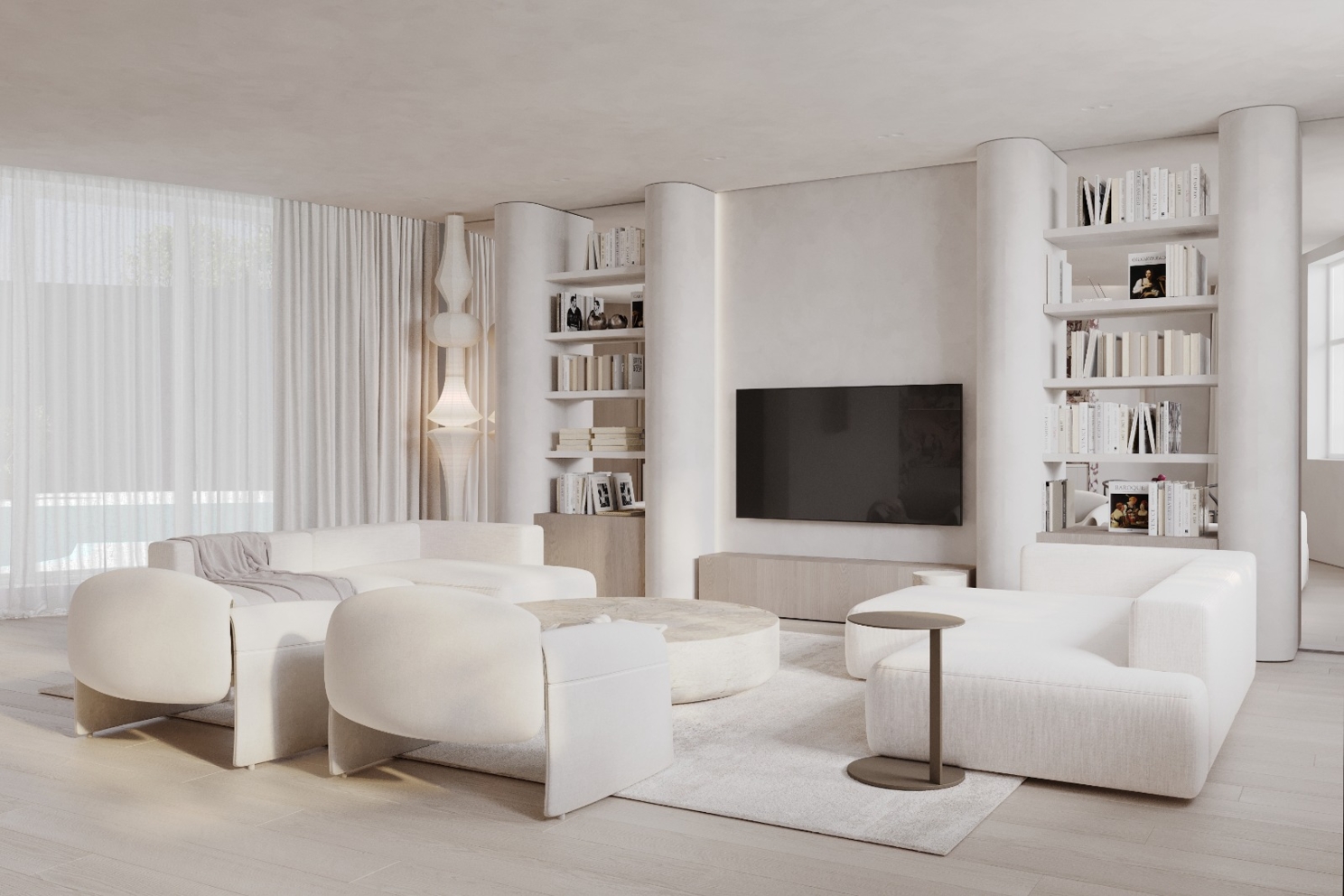 Теперь подумаем, что мы можем повторить с такого референса, чтобы наш кадр получился таким же приятным. Да практически всё — у нас в сцене есть и диваны, и столик, и окно.