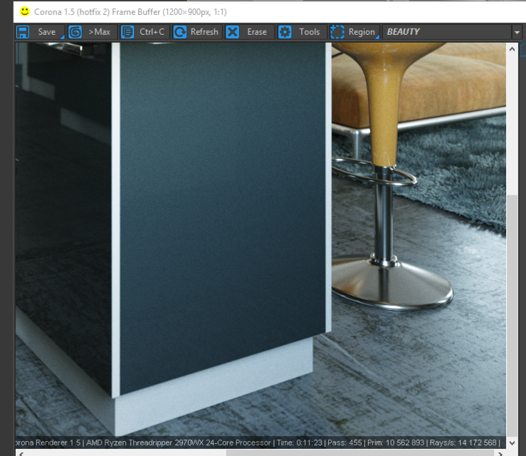 Тестовую сцену Vray red room 03 мы прошли за 5 минут и 45 сек: