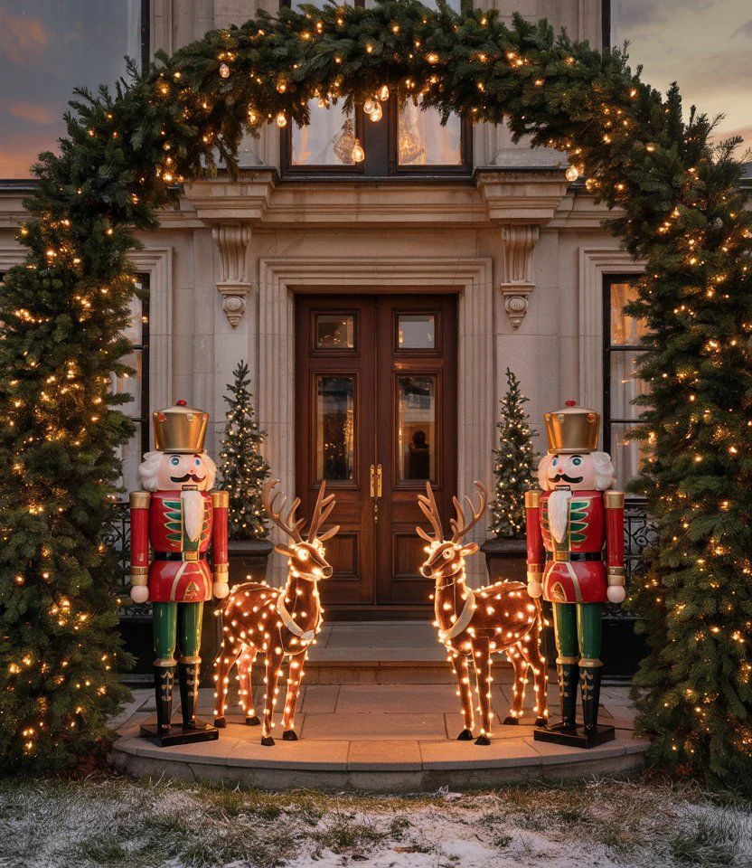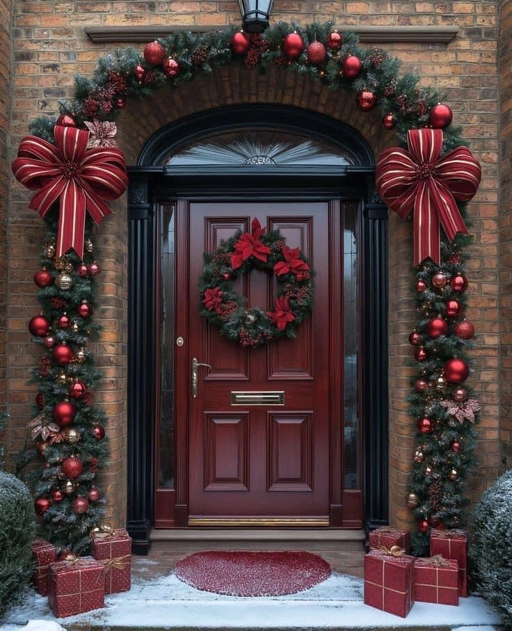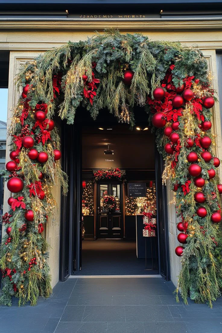 - Композиционная целостность новогоднего оформления входной группы