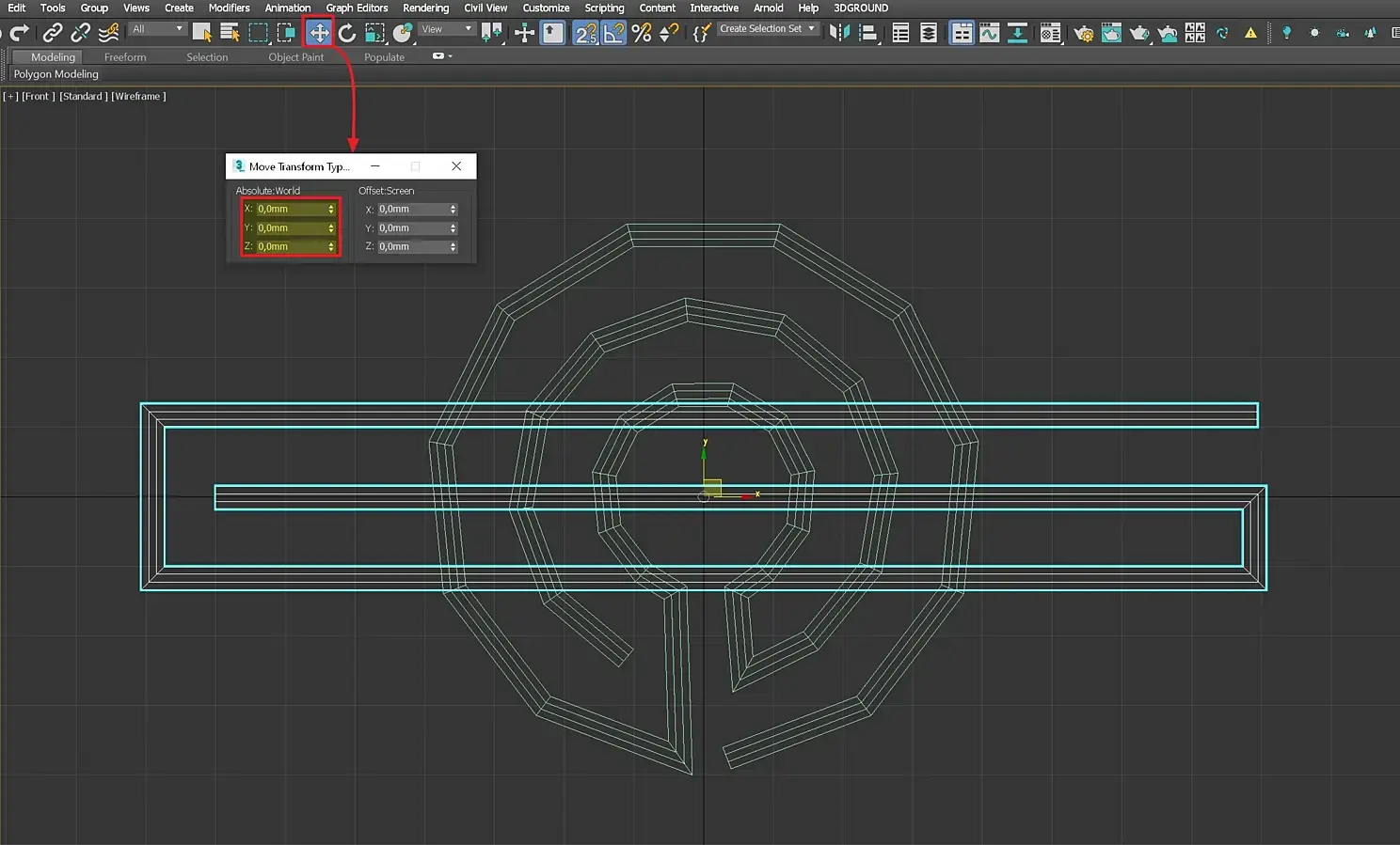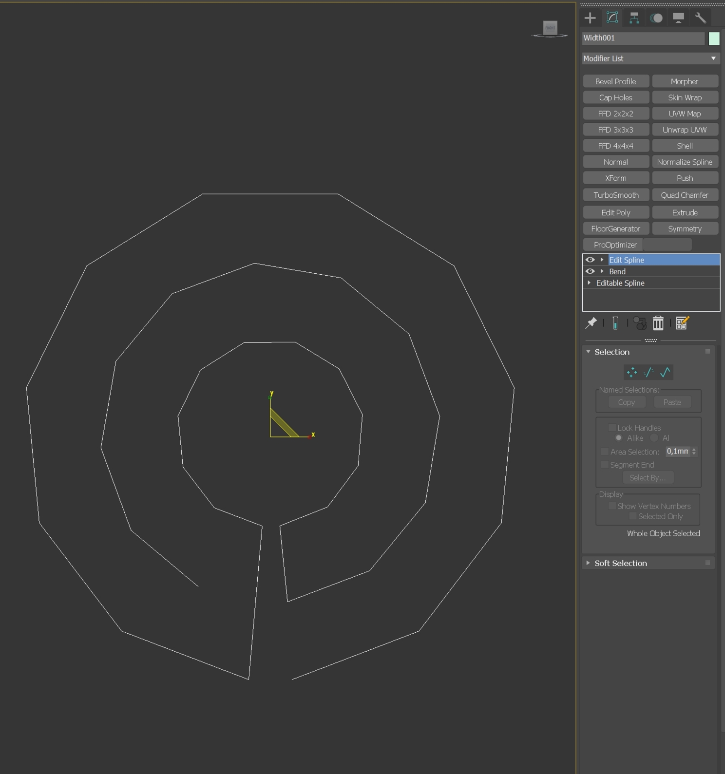 Видим, что геометрия в центре пересекается, поправим этот момент. В Edit Spline выделим нужные вершины, применим к ним модификатор трансформации FFD 2-2-2.