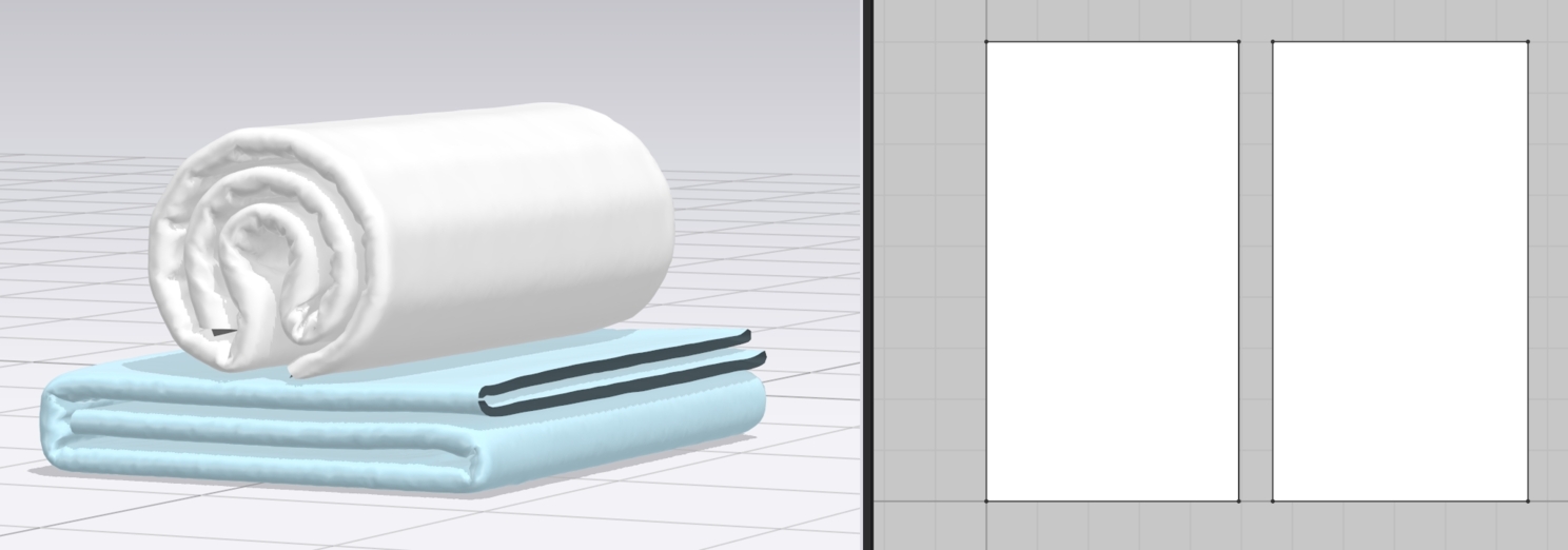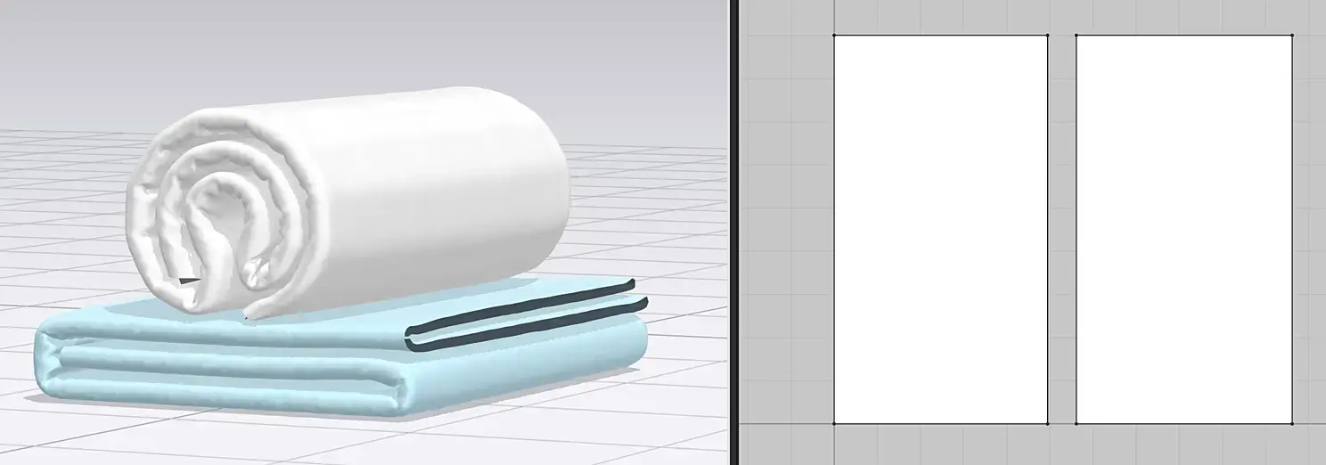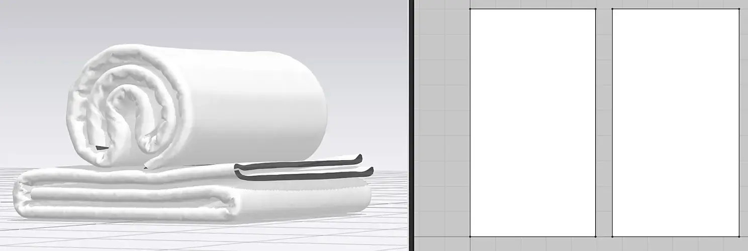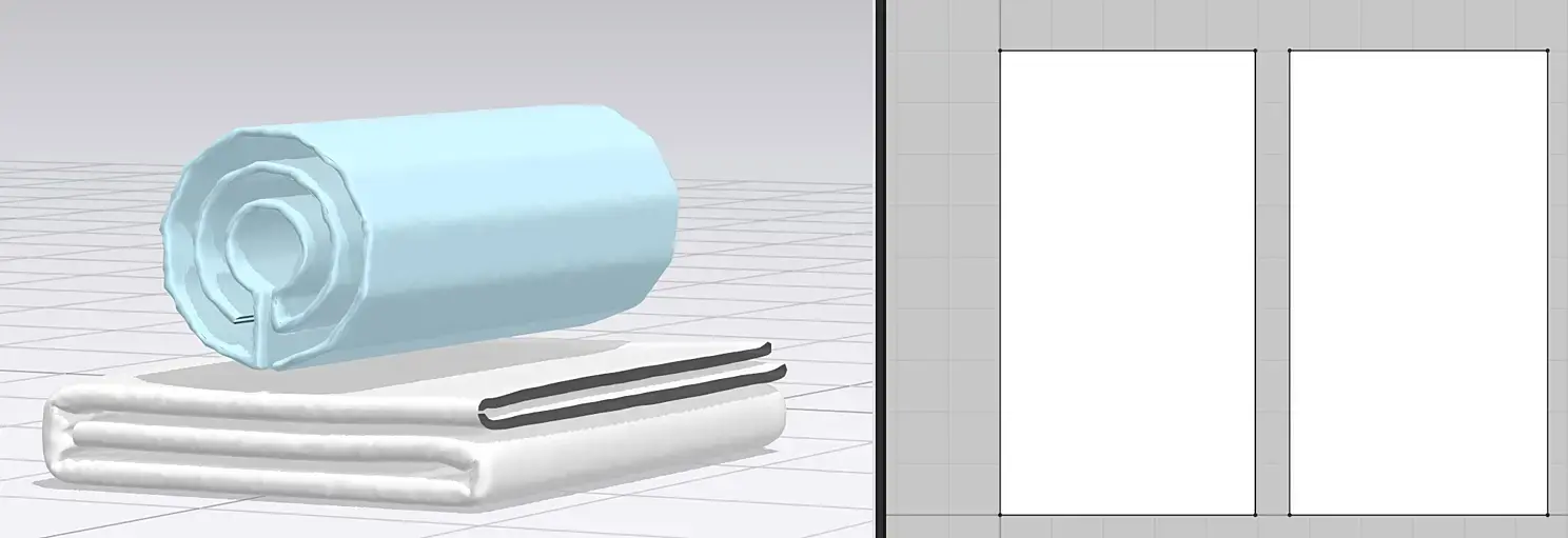 После импорта увидим такую картину. Обратите внимание, что в 3 д окне полотенца 2, а в окне 2 д раскроя одно.
