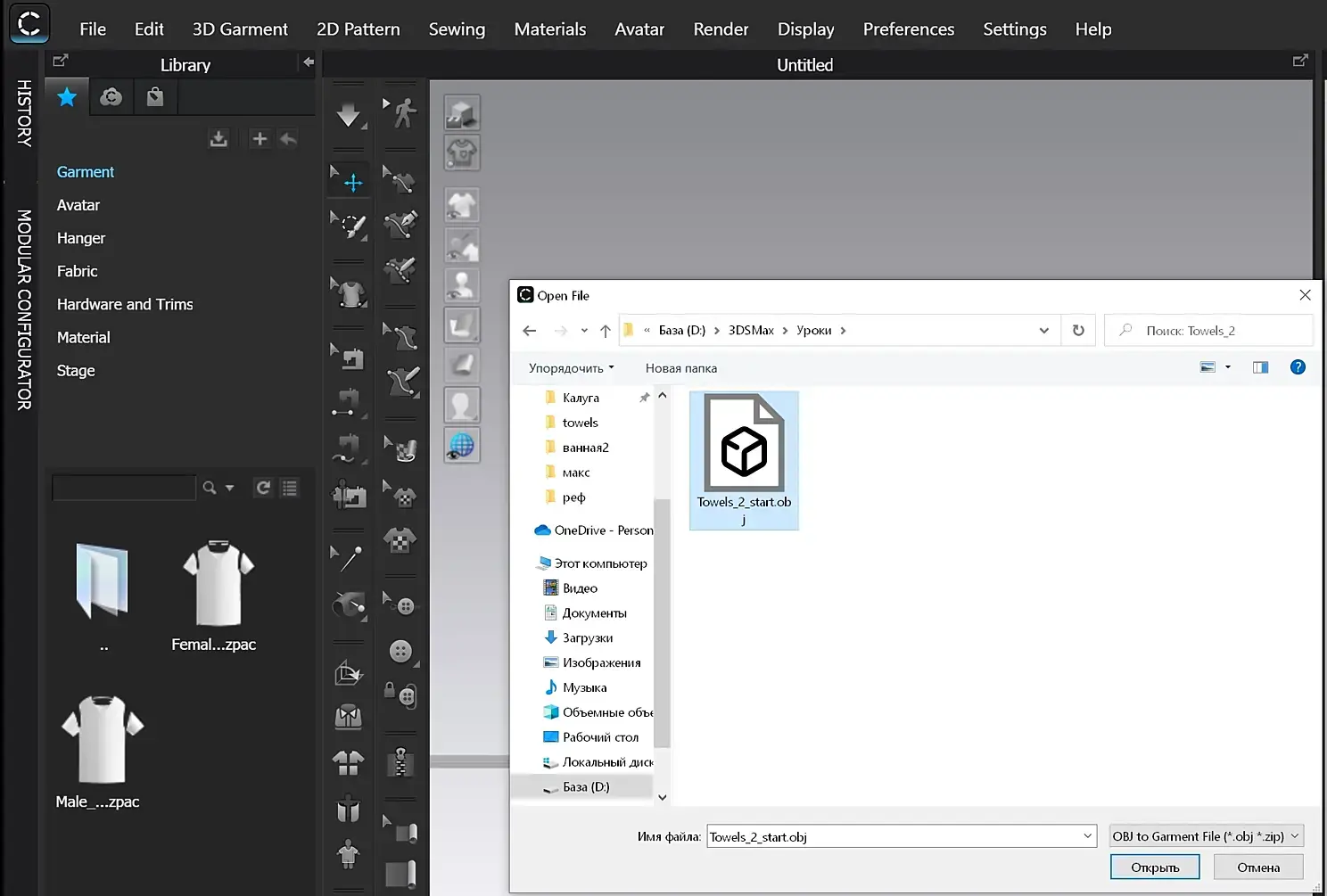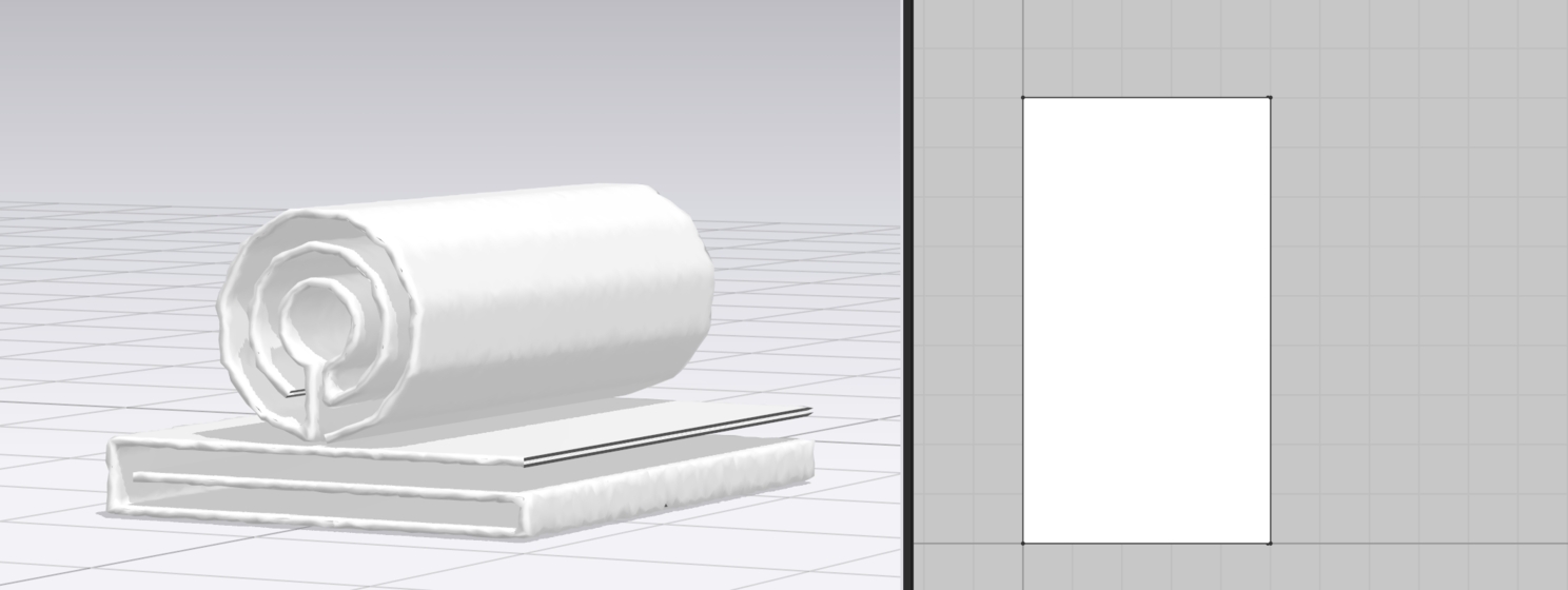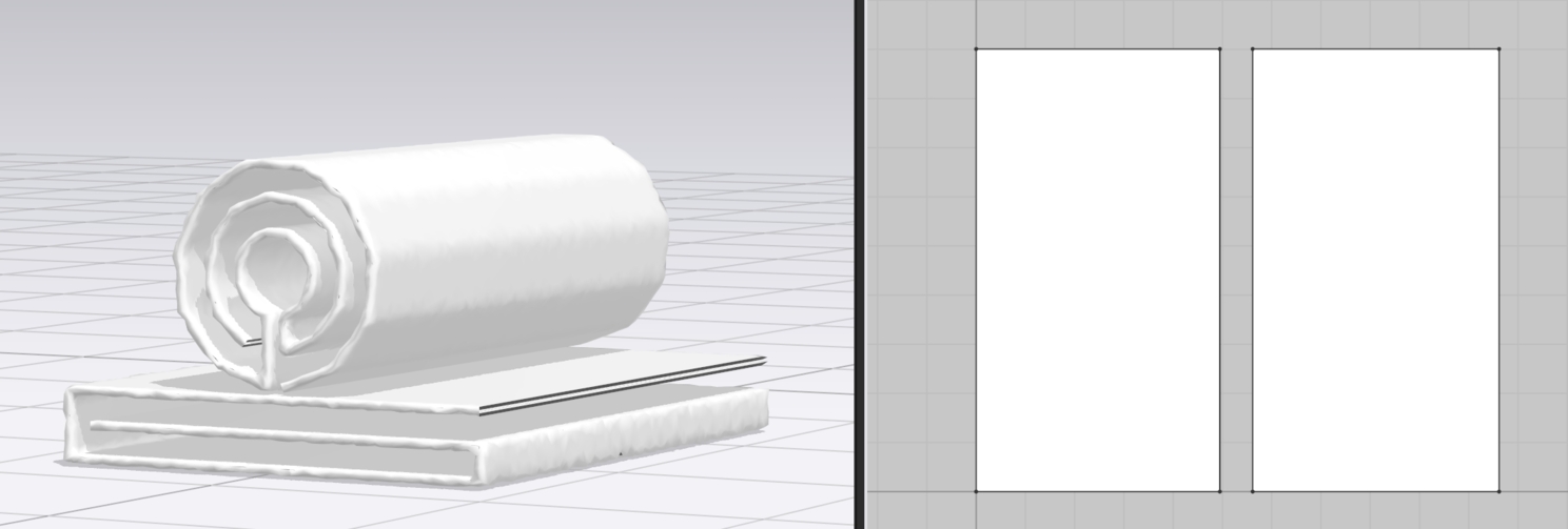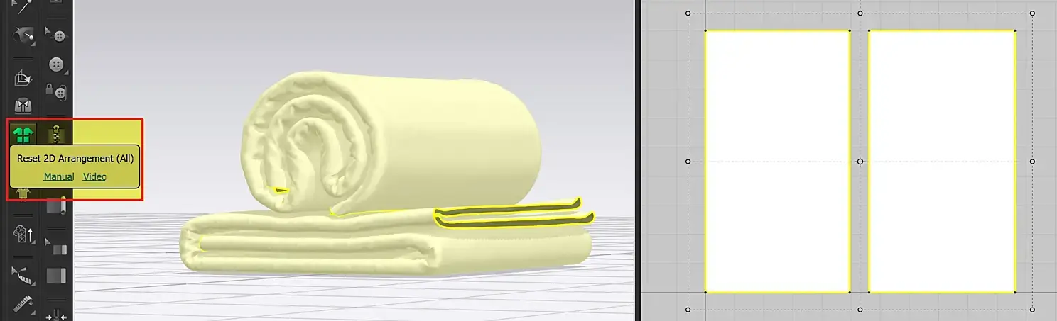 После импорта увидим такую картину. Обратите внимание, что в 3 д окне полотенца 2, а в окне 2 д раскроя одно.