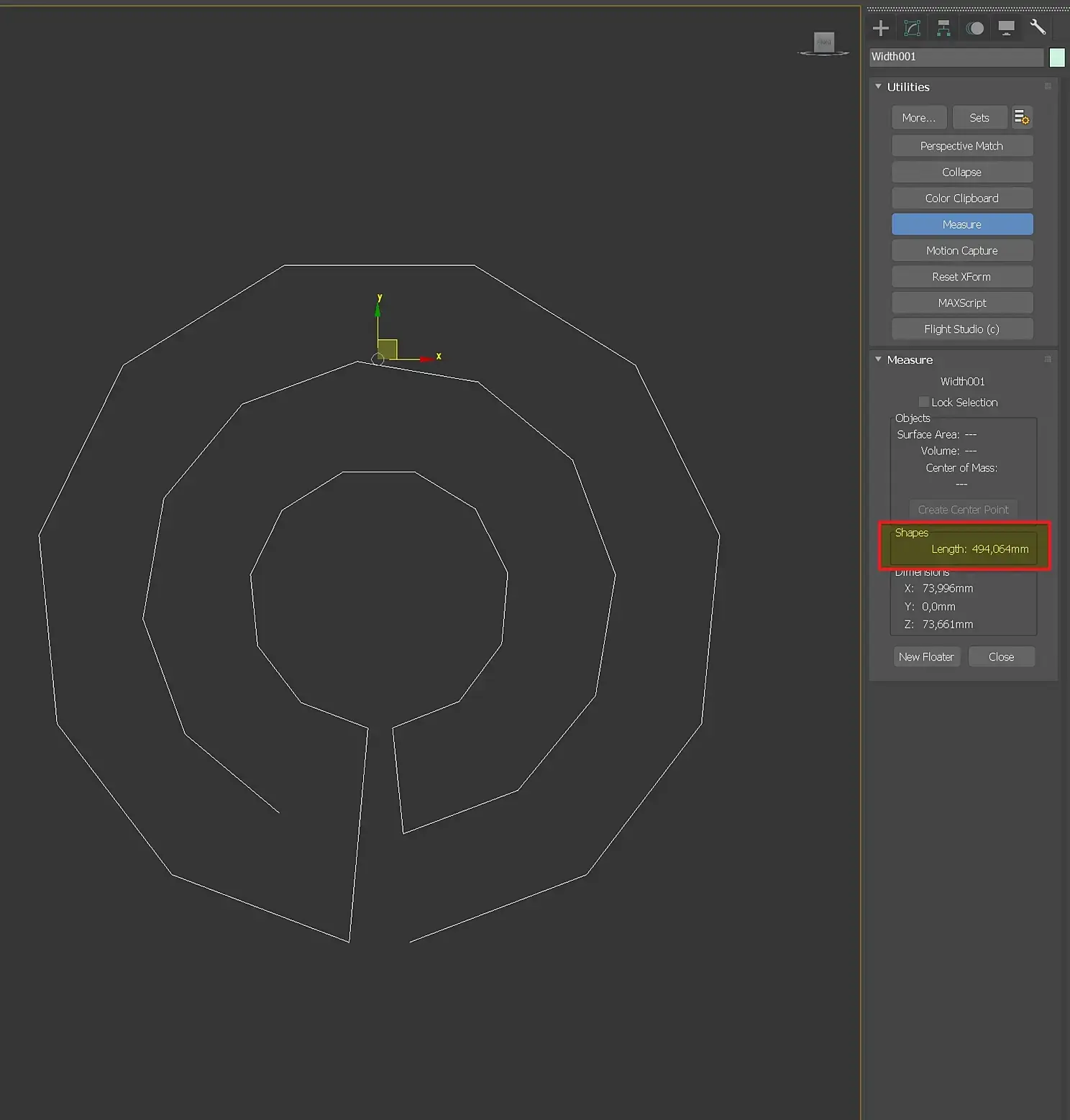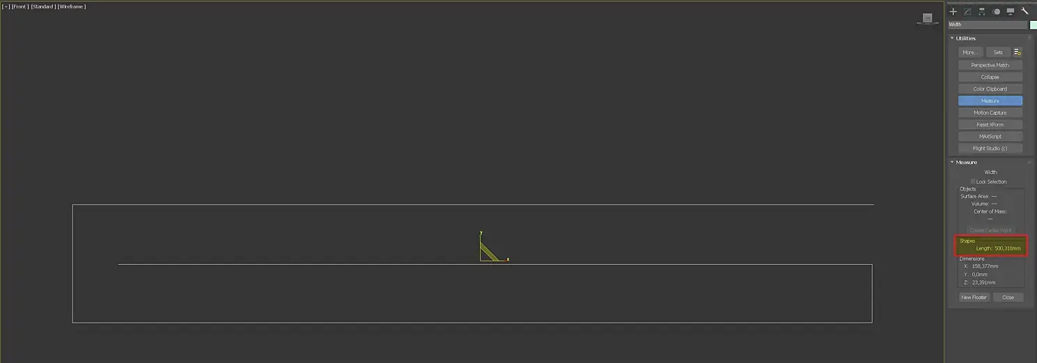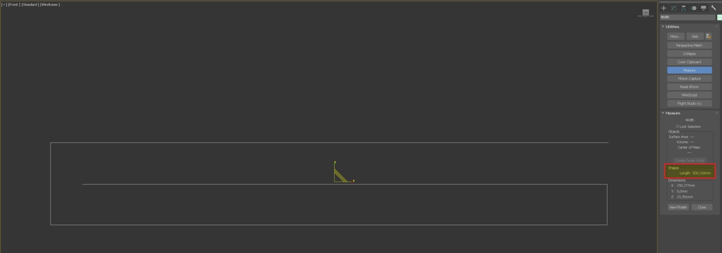 Помним, что длина полотенца равна 900 мм, а ширина 500 мм. Посмотреть размеры сплайнов можно в Utilities-Measure, кнопка New Floater делает окно утилиты плавающим, она всегда перед глазами.