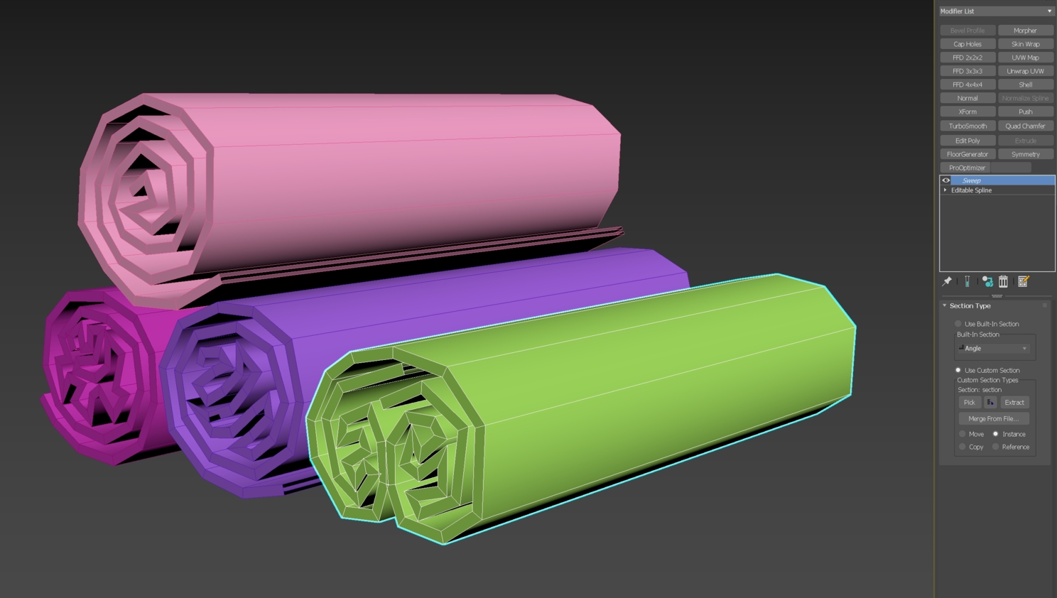 Скопируем модификатор Sweep с первого полотенца и накинем его на второе в любом режиме (instance или copy).