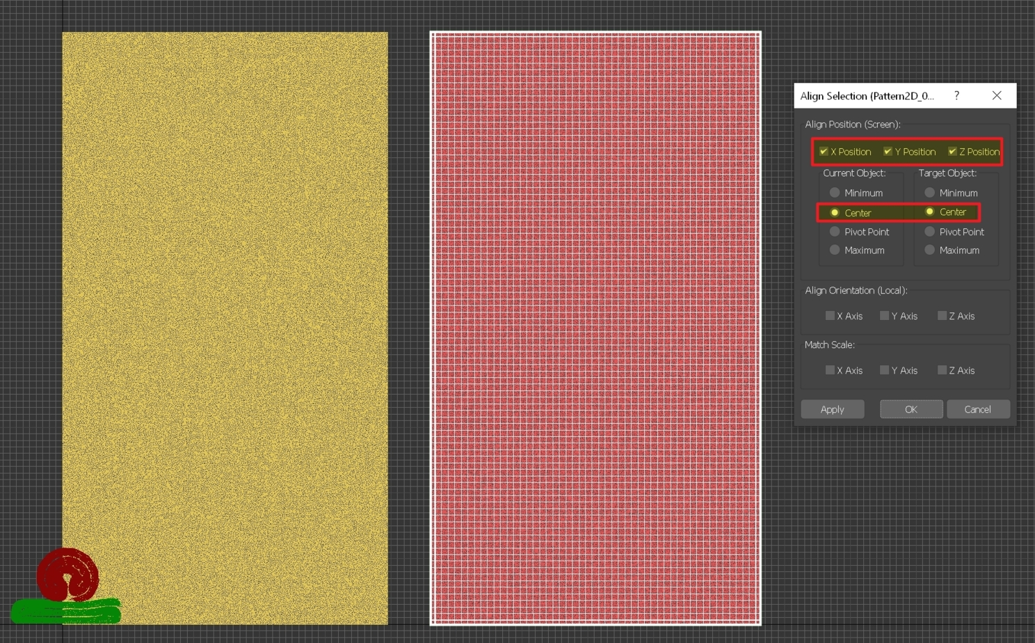 Заготовка для второго полотенца готова. Разместим объекты в центре координат.