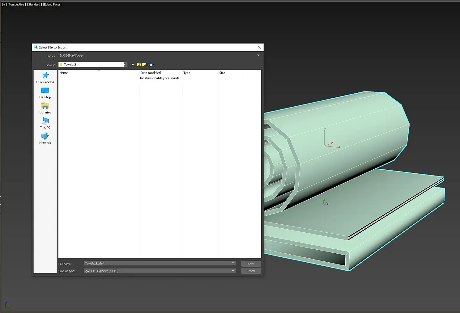 Последний шаг – перевести заготовку в Editаble Poly, сделать ResertXForm и снова перевести в Editable Poly. Мы готовы к просчету ткани в программе симуляции. Выделяем объекты, File-Export Selected, указываем путь сохранения.