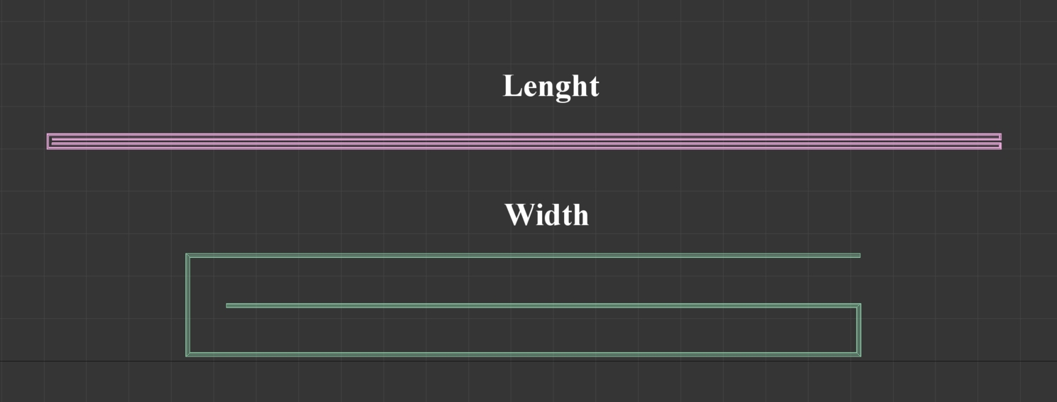 Начинаем работу в 3d max и как раз самое основное и сложное нас ждет именно сейчас. Нарисуем два профиля инструментом линия и дадим им соответствующие имена Width (сечение по ширине) и Length (сечение по длине). При рисовании сплайнов для большей точности и удобства можно задать толщину в Rendering - Enable In Viewport. Для Length по толщине полотна полотенца, для Width - исходя из полученной толщины Length.