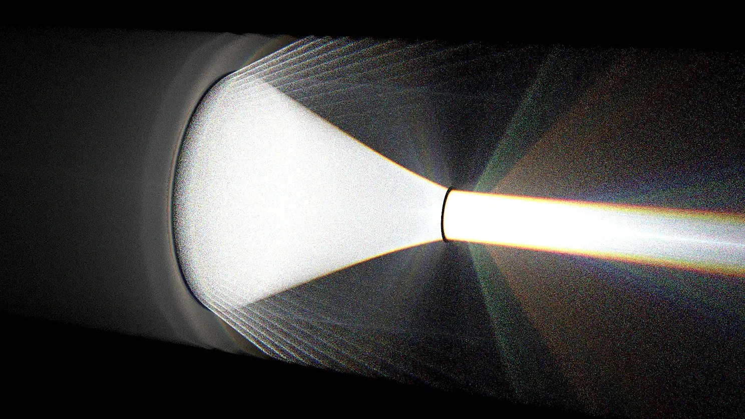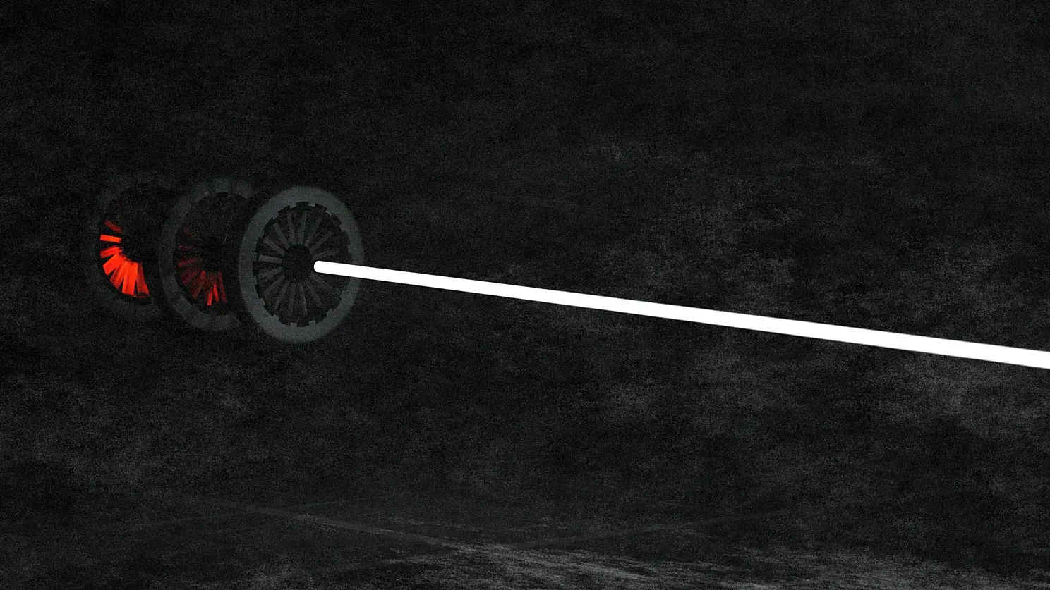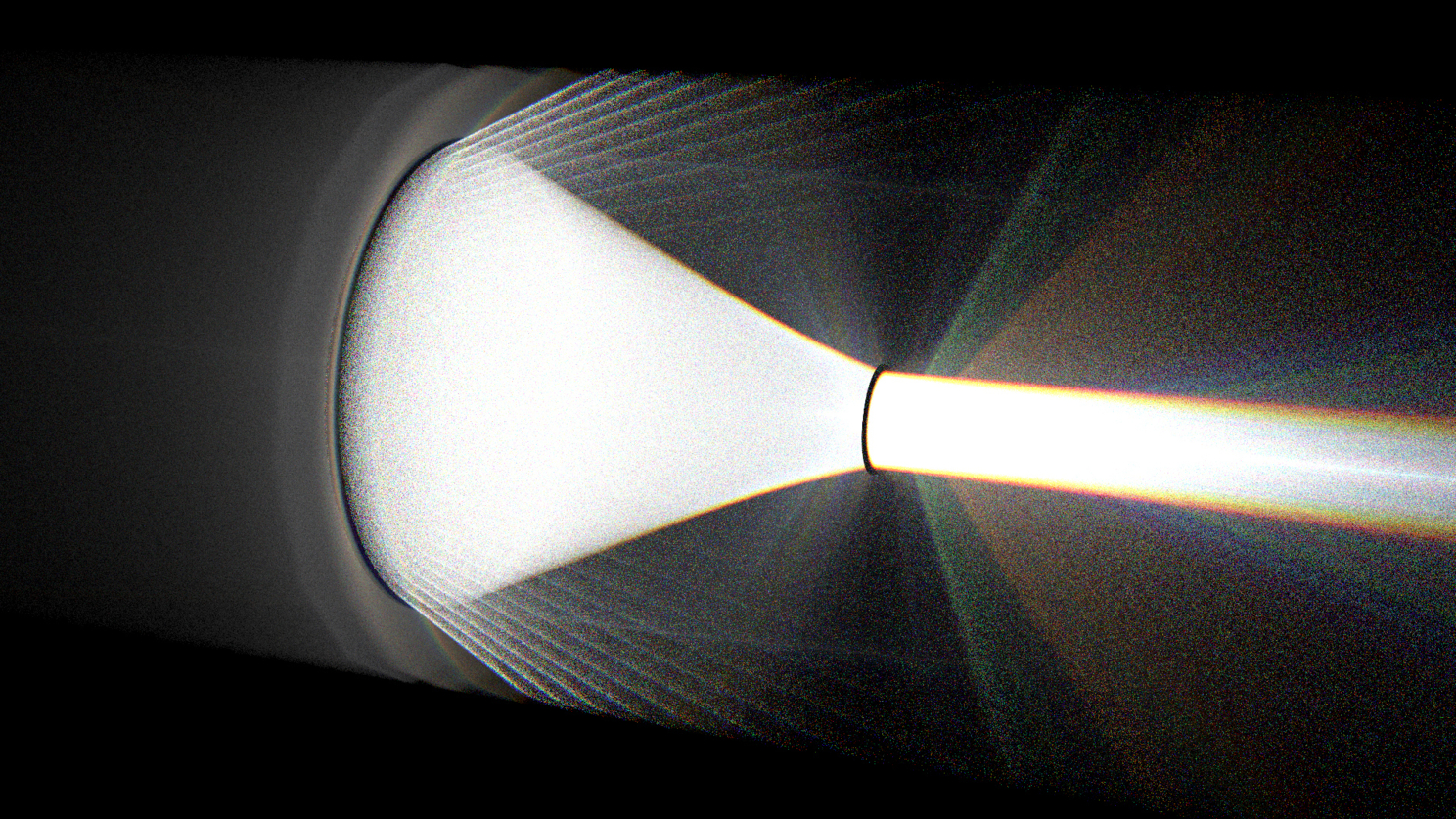 8) Сам лазер. Отдельным челленджем было создание направленного пучка параллельных лучей, т.к. индиго не поддерживает директ лайты. Пробовал несколько разных вариантов, но почти все из них либо не работали, либо отправляли рендертайм в космос. А что касается внешнего вида - технически это просто неприметный чёрный цилиндр, но хотелось чего-то более зрелищного, и потому я соорудил некий корпус. Изначально хотел, чтобы там ещё кругляши светились, но индиго не вывез нормального SSS при такой яркости источника света.