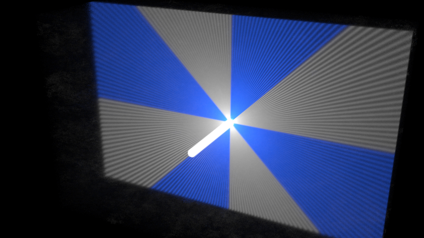 Тут опять видны отражённые обратно лучи, которые создавали проблемы. В частности на стене и полу справа виден смайл. Отчасти решил это «надетыми» на луч шайбами,которые про себя называл «ферритовые кольца»