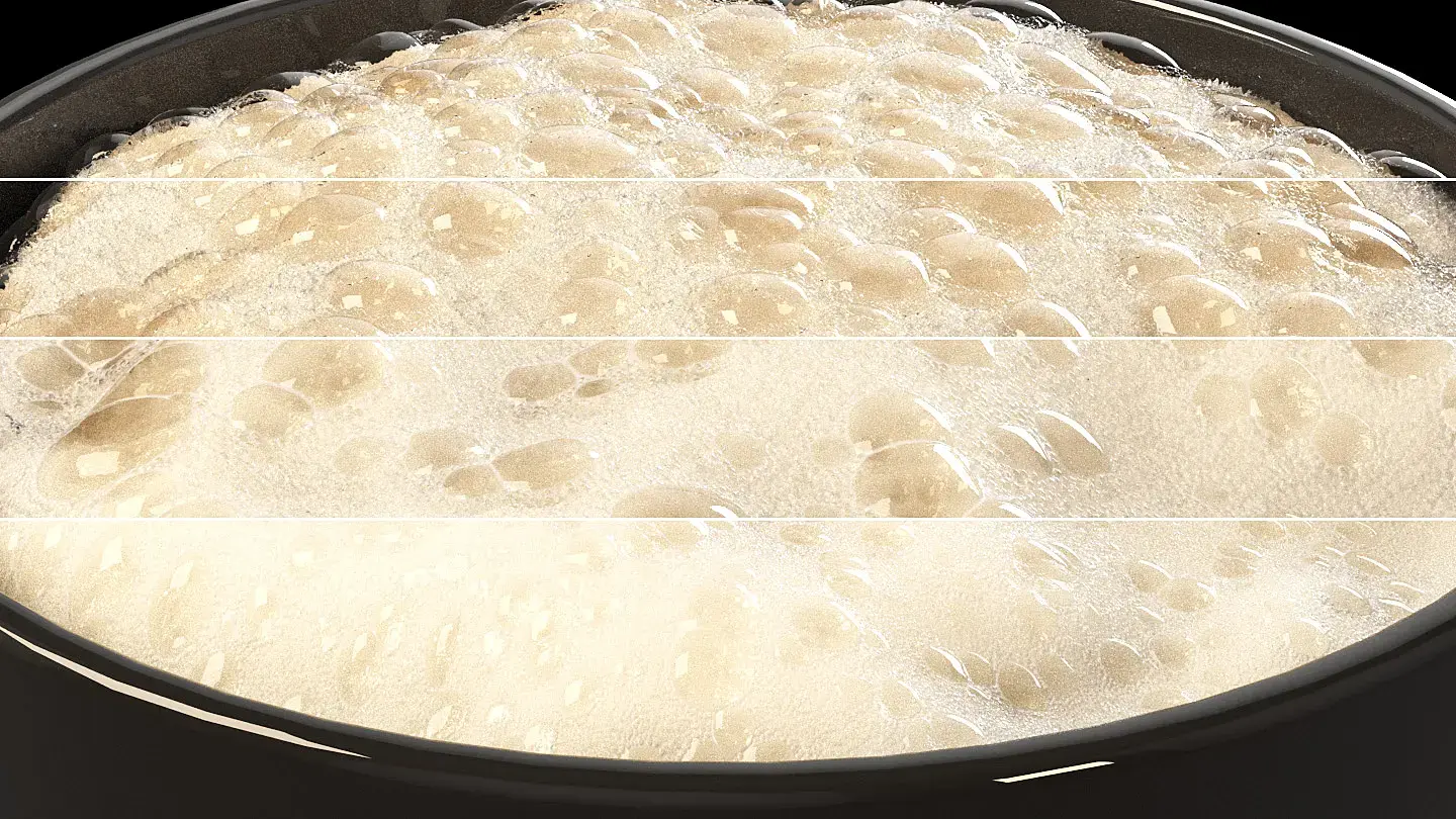 Итак, началось у меня всё с вопроса "как сделать пену" и нескольких дней на этап RnD по поиску ответа, но начну я с конца. Быстро пробежимся снизу вверх по картинке, от простого к сложному, так сказать.