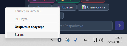 Приложение работает в фоне и живёт в системном трее. Если случайно закрыл вкладку браузера — не паникуй, приложение не закрылось. Кликни по иконке в трее — окно откроется снова. Чтобы полностью выйти: правая кнопка по иконке в трее → «Выход». И ещё: если попробуешь запустить приложение повторно, когда оно уже работает, — получишь ошибку. Порт занят работающим процессом. Просто открой через трей.