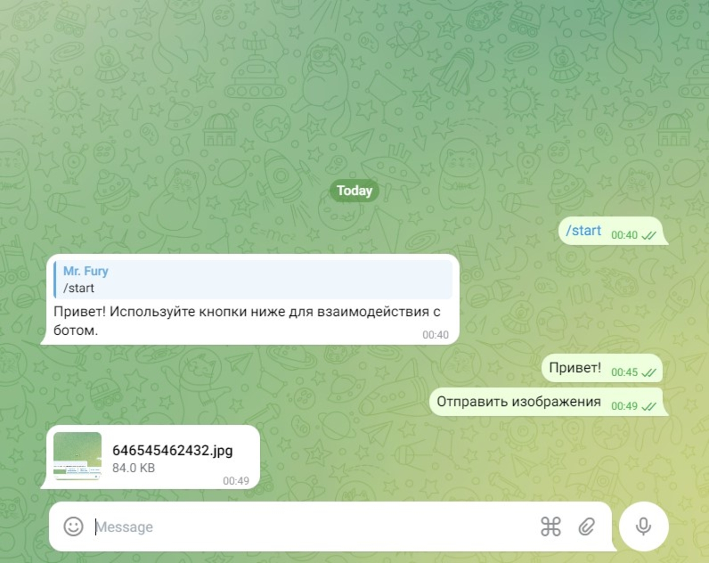 Теперь настало время обратится к нашему Телеграм боту или приемному отделению наших рендеров. Главным нововведение было то, что принимать наши рендеры необходимо было не по окончанию рендера и запись наших важных jpg в дирректорию, а по волшебной кнопке получить. А так же что бы наш jpg передавался как документ, что бы не происходило его "шакалье" сжатие.
