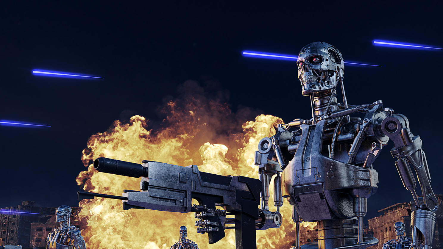 Эту работу я выкладывал в галерею еще в 2021 году. Тогда это была серия картинок по франшизе «Терминатор», на создание которой ушло немало сил и времени. Сюжет всем известен: Искусственный Интеллект выходит из-под контроля и начинает войну на уничтожение человечества.