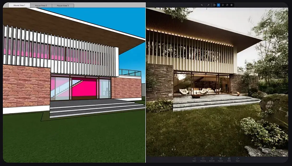 В совокупности эти усовершенствования делают повседневную жизнь более приятной и продуктивной. Синхронизированные окна просмотра Twinmotion и DCCДля тех, кто уже с удовольствием работает с исходным файлом в DCC или CAD-пакете, одновременно наблюдая за результатами, полностью визуализированными в Twinmotion (благодаря Datasmith Direct Link), новая возможность синхронизации положения и свойств камеры вьюпорта Twinmotion с камерой вьюпорта DCC станет настоящим подарком.Первоначальная поддержка доступна для Archicad, Revit, Rhino и SketchUp Pro. Обязательно обновите плагин (где применимо) до последней версии, чтобы воспользоваться этой новой функцией.