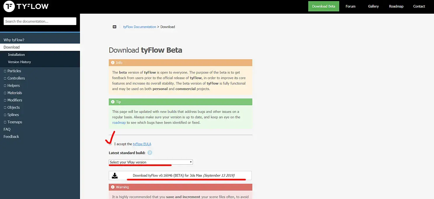 Что бы начать работать с tyflow, его нужно установить. Сделать это достаточно просто, нужно "загуглить" название плагина и в первой же ссылке на главной страничке, мы можем его скачать и установить по инструкции. При установке плагина есть одно "НО", должен быть установлен обязательно Vray(привет коронщикам). На конечный этап это не как не повлияет. Геометрию можно рендерить будет в любом движке.