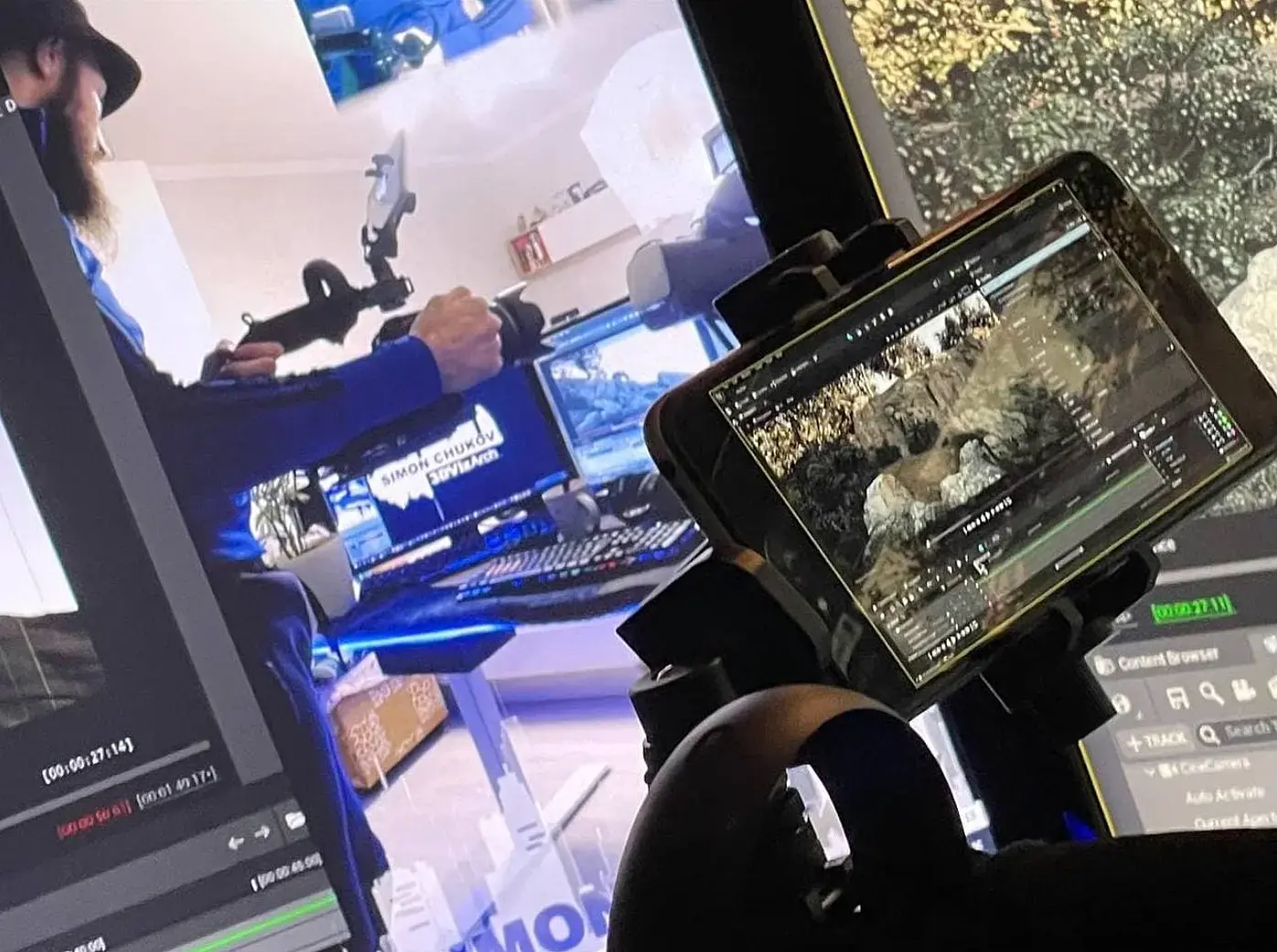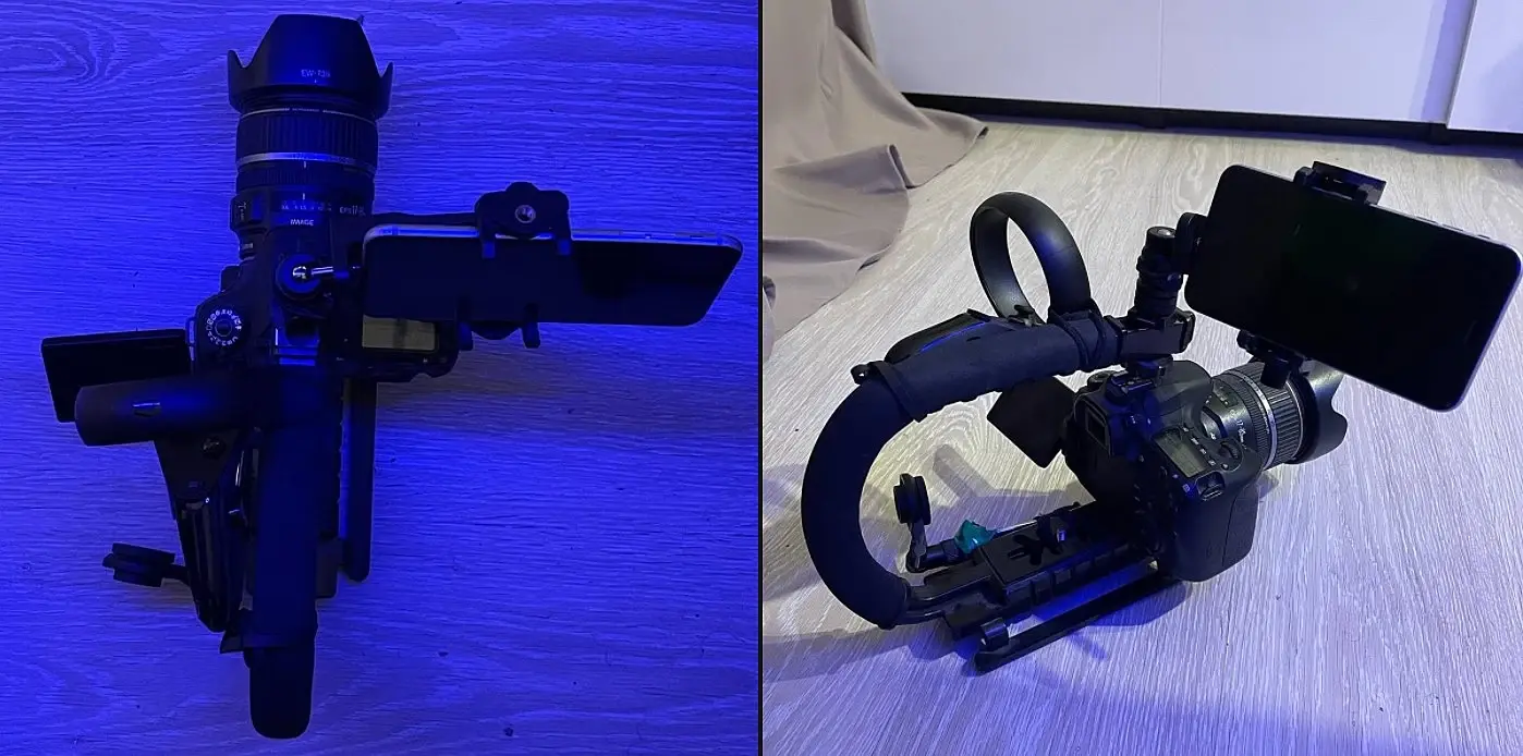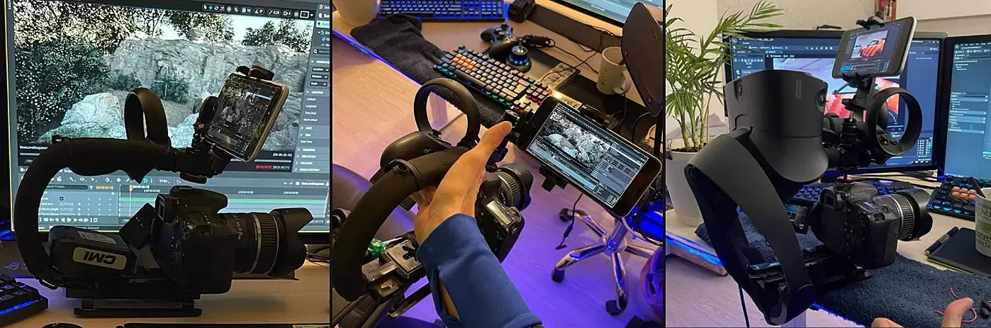 Таким образом, работа компьютерного художника превращается в развлечение с поиском новых применений и решений с последующим описанием результата в виде туториала или хотя бы небольшой статье вроде этой. Для заказчика это возможность доступным образом, в короткие сроки получить новый контент построенный на современных технологиях, за доступные деньги в отличии от много миллионного бюджета оборудования для большого кино.В этой статейке я коротко описываю свой риг с ссылками на оригинальные уроки что бы не искажать первоисточники. И так! Для того что бы собрать качественную виртуальную студию можно использовать разные решения, их правда очень много на сегоднешний день. Я хочу показать на примере доступного шлема виртуальной реальности Oculus Rift S. Для того что бы подключить шлем к анрилу и вообще, понять как это работает, желательно иметь базовые познания UE5 хотя бы для болимение свободной ориентации в интерфейсе. В этих уроках вы узнаете как создать текстуру с видеопотоком: 1) youtube 2) youtube Тут короткий урок как подключить VR контроллер:youtube (видео-уроки на английском но с помощью яндекс браузера можно послушать и на русском. У яндекса сейчас работает отличная нейронка которая в реальном времени переводит на родной).В принципе это все!=)Камера РигНа самом деле для переноса данных положения камеры в ц цифровое пространство нужен только один контроллер практически от любого набора виртуальной реальности. Я испытал эту технологию с помощью шлема Oculus Rift S, дешевый держатель камеры на который добавил мобильный телефон. Для передачи изображения изнутри трехмерной сцены прямо на риг с камерой. Где бы я не находился в дали от компьютера, я вижу то что видет камера в трехмерной сцене. Для этого я взял свой старенький айфон и просто позвонил на него через AnyDeskИзюминка на торте это физическая камера с которой я планирую транслировать видео из реального мира в Unreal Engine 5После череды тестов я попробовал добавить к ригу сам vr шлем. С учетом того что для работы oculus rift используются камеры на самом шлеме без необходимости в установке дополнительных станций отслеживания шлема в пространстве как например у HTC Vive. Мы не ограничивается дистанцией радиуса действия этих доп станций. При хорошем раскладе можно вооружится хорошим ноутбуком с проектом на борту, подключить этот риг и пойти на улицу писать анимацию виртуальной камеры на любом расстоянии перенося ноутбук с ригом на семе. В результате трехдневного марафона по поиску решения "Виртуальный проданшин на дому", у меня получился довольно серьезный первый риг как у настоящих кинодельцев:)Далее планирую програмно улучить систему с помощью блюпринтов UE5. Первым делом хочу задействовать кнопки на контроллере для управления фокусным расстоянием, зумом, экспозиции, дополнительной программной стабилизации цифровой камеры. За тем провести полноценные тесты в боевых условиях создать какой то проект с применением данной технологии. За тем куплю зеленые паруса (огромный кусок зеленой ткани для хромакея) и проведу новые тесты с последующим описанием процесса создания качественного Virtual Production в домашних и не очень условиях.Ну а какой проект видите Вы? И вообще, какие есть идеи в применении данной технологии, в ближайшем будущем? Прошу в комментарии как к данному посту так и в социальных сетях где я активно 
