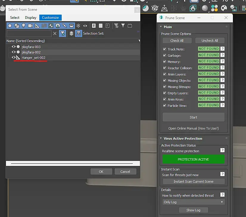Внимание! В сцене обнаружены мусорные объекты.