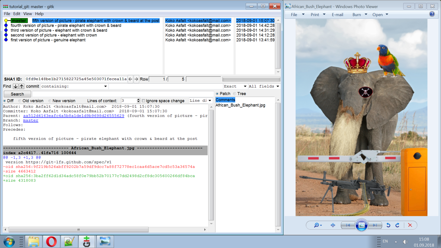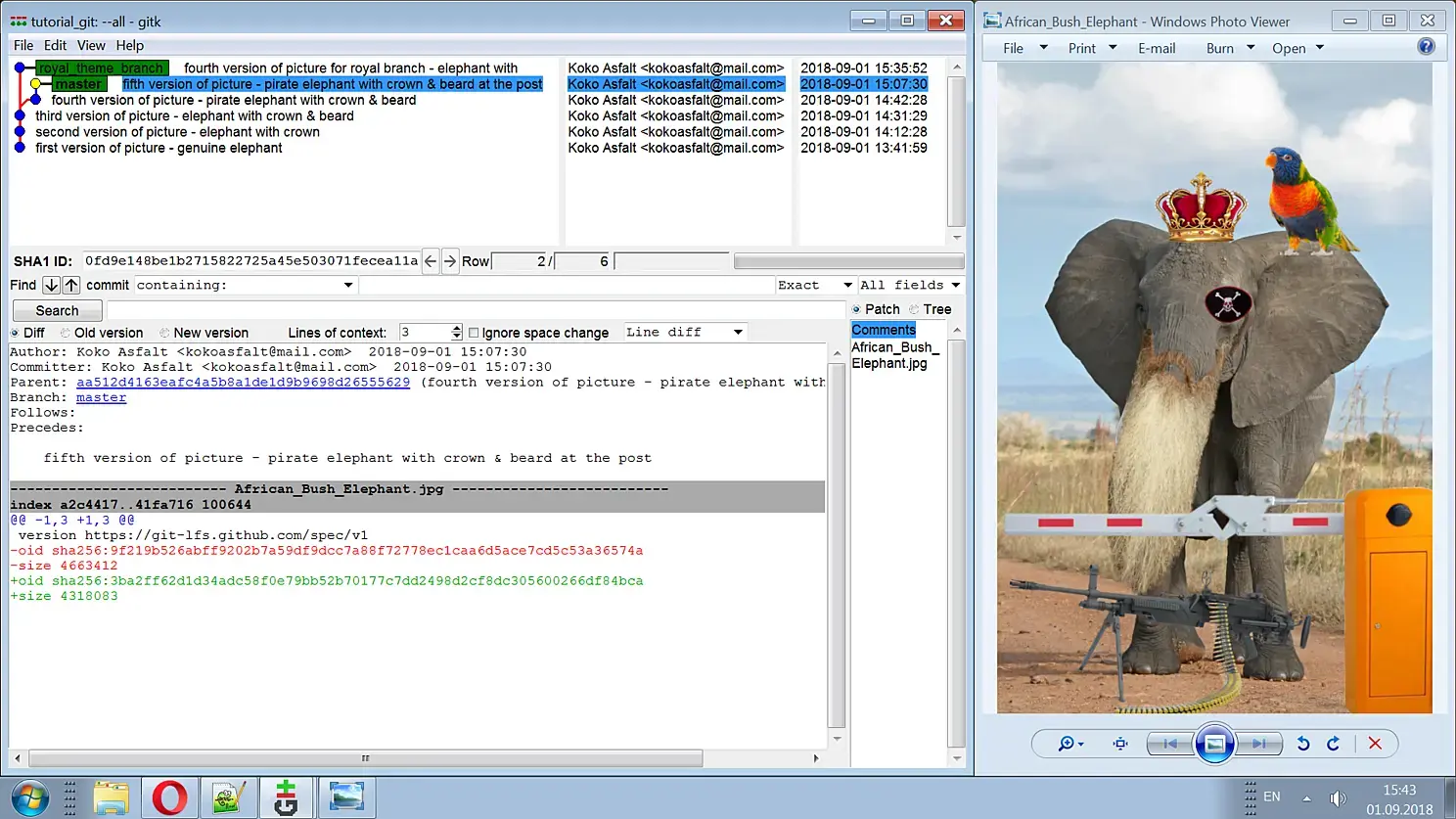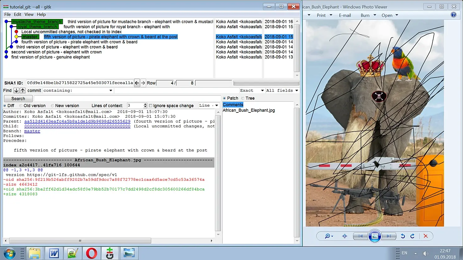 В интернете тьма информации про git на русском и особенно английском языке, все разжевано на достаточном уровне. Проблемой может быть то, что много где говорится про работу в консольном приложении, путем набора команд вручную. В графическом приложении эквивалентное действие для типовых операций имеется всегда, если хорошо поискать на панели меню. Про git lfs информации поменьше. Полезные ссылки: