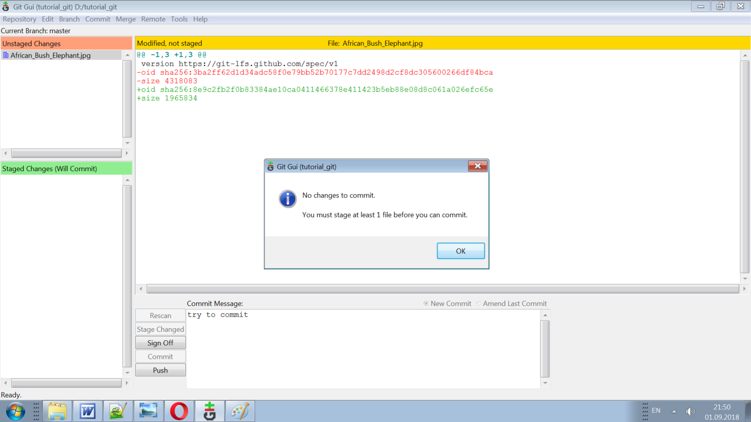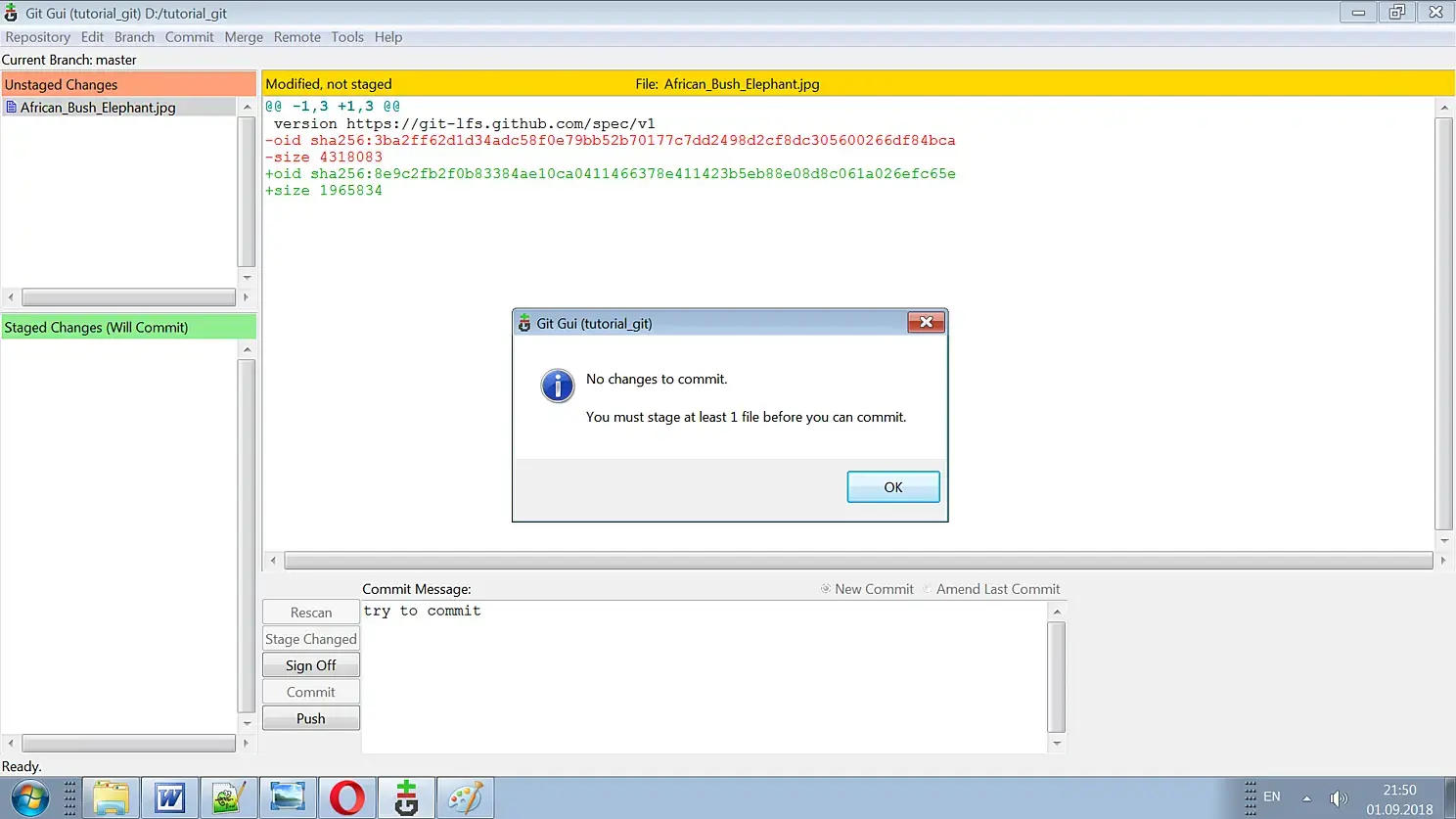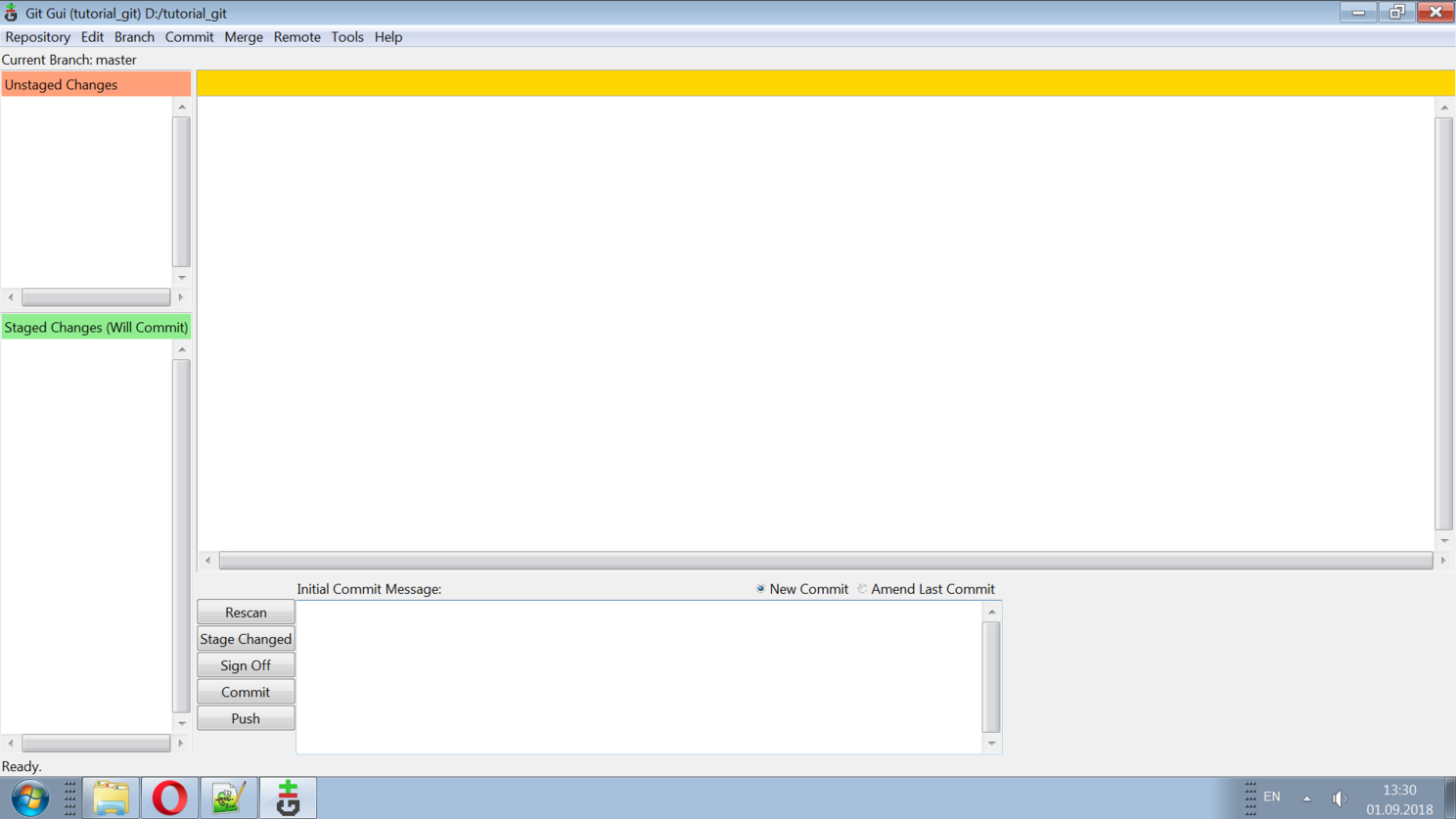 Но т.к. у нас в «Staged Changes» есть новый файл, то все должно пройти как по маслу.