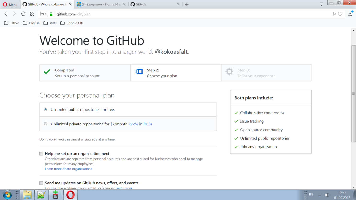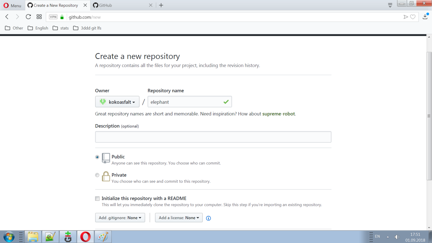 Про координацию работы в команде с использованием системы контроля версий. Если удаленно есть несколько человек, которые на своих компьютерах используют подобные системы, логично было бы создать место, чтобы централизованно хранить изменения, поступающие ото всех работников. Для этого созданы сервисы хостинга проектов (репозиториев) Bitbucket и GitHub. Для тренировки на GitHub можно создавать бесплатно публичные репозитории, правда они видны всем подряд в интернете (приватные репозитории платны). Для начала использования нужно пройти регистрацию, после чего настроить профиль, создать репозиторий.