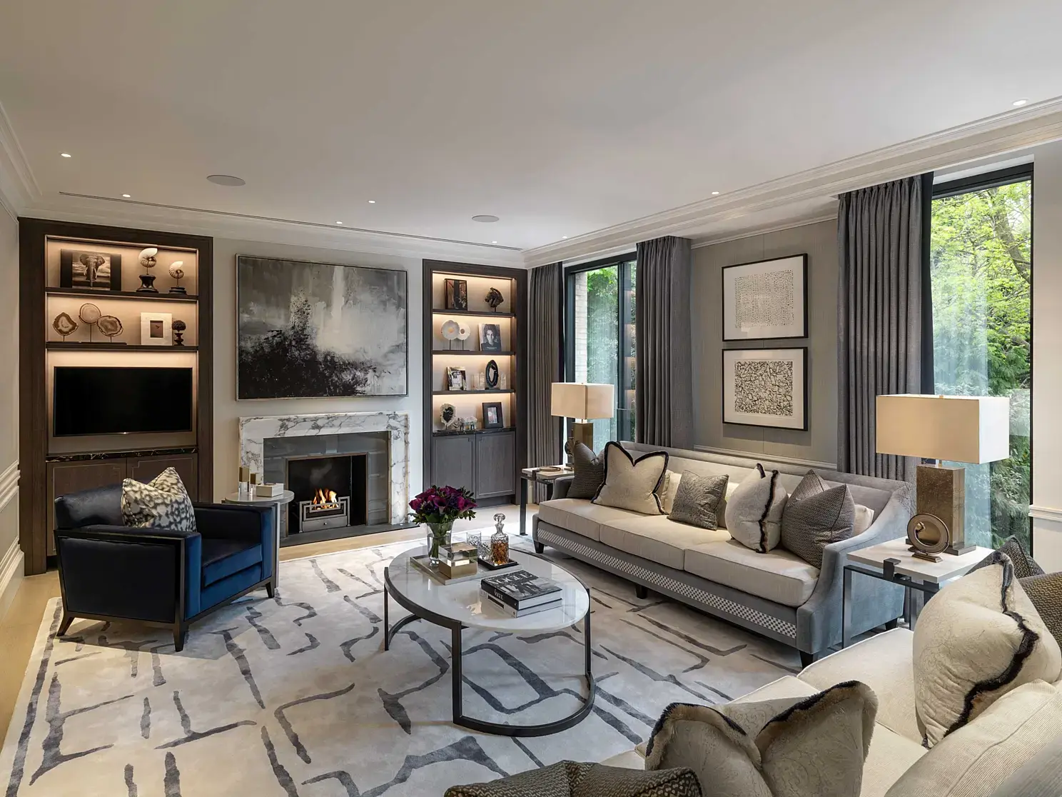 Детализировал встроенную мебель в каминной стене