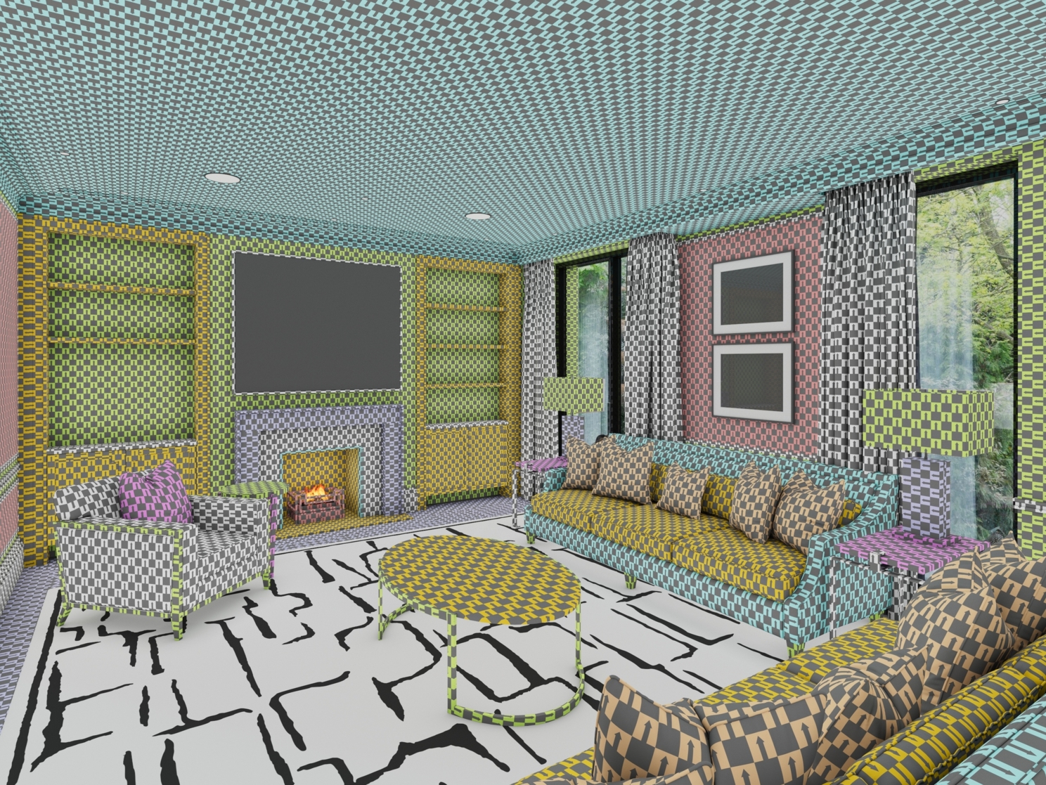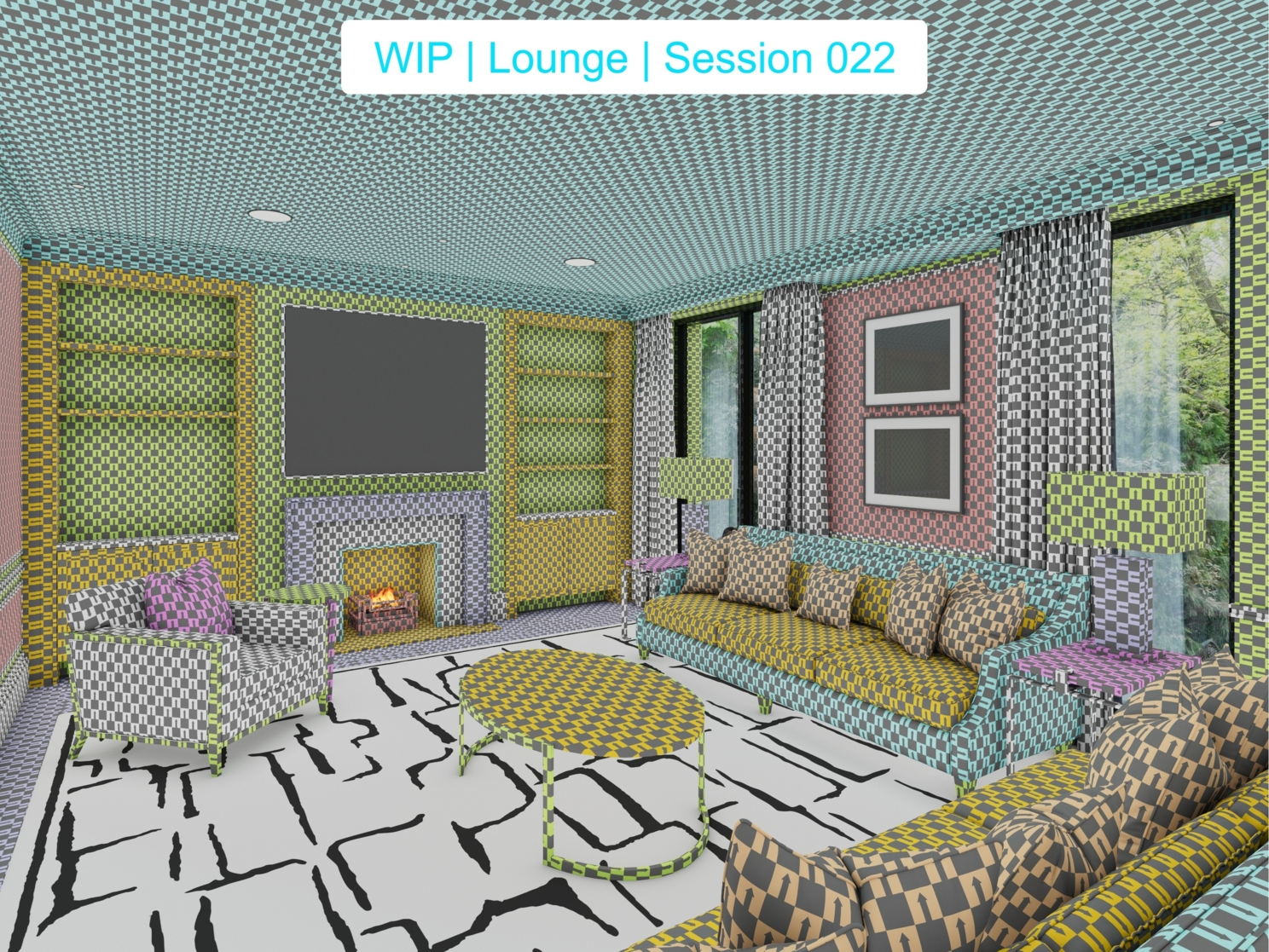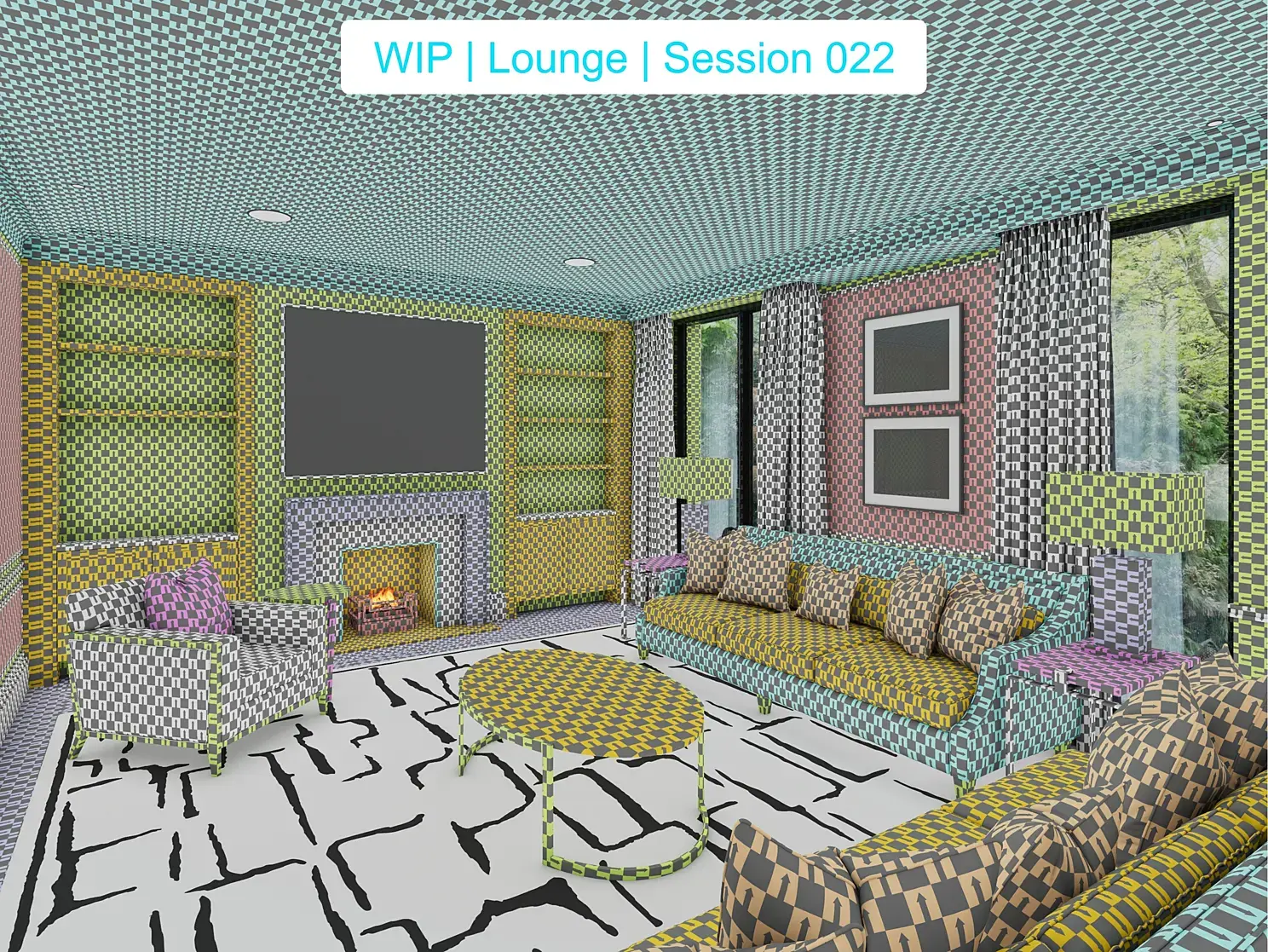 На двадцатой сессии всплыли некоторые косяки с геометрией у придиванных столов и случился затуп с ковром — забыл как запекать фон на поверхность геометрии. Мне это нужно было что бы получить базовую основу с точным рисунком ковра для создания маски. Пришлось прервать сессию, освежить память и записать дополнение. Решил сразу сделать маску для ковра, а не просто натянуть чекер текстуру, что бы не делать потом, двойную работу. Остальные сессии — обошлись без серьезных приключений, так же всплыли мелкие косячки в геометрии, которые быстро были исправлены.