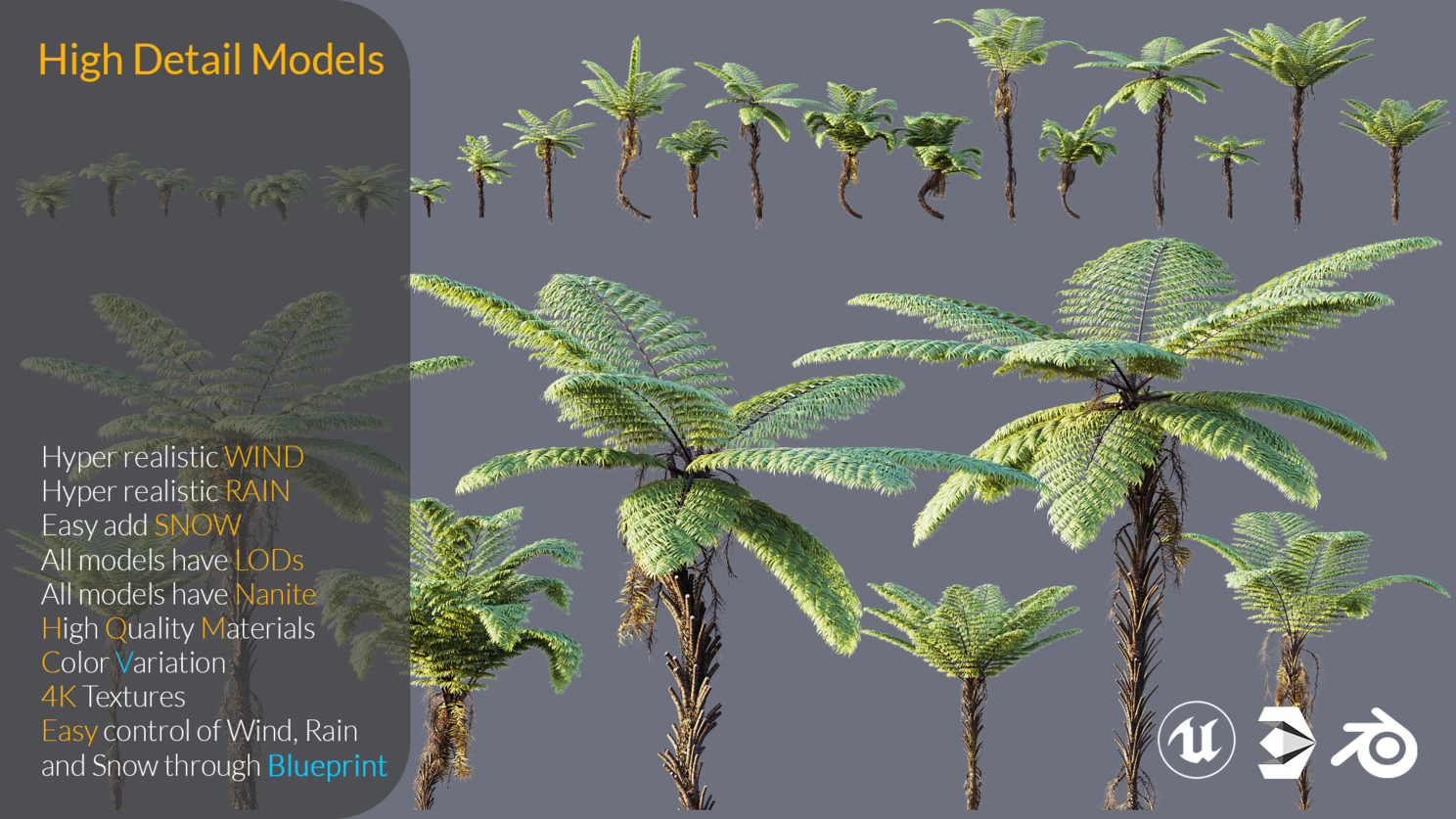 This product includes a collection of 20 high-quality Alsophila Spinulosa Fern Tree models, carefully created for realistic environments and professional productions.