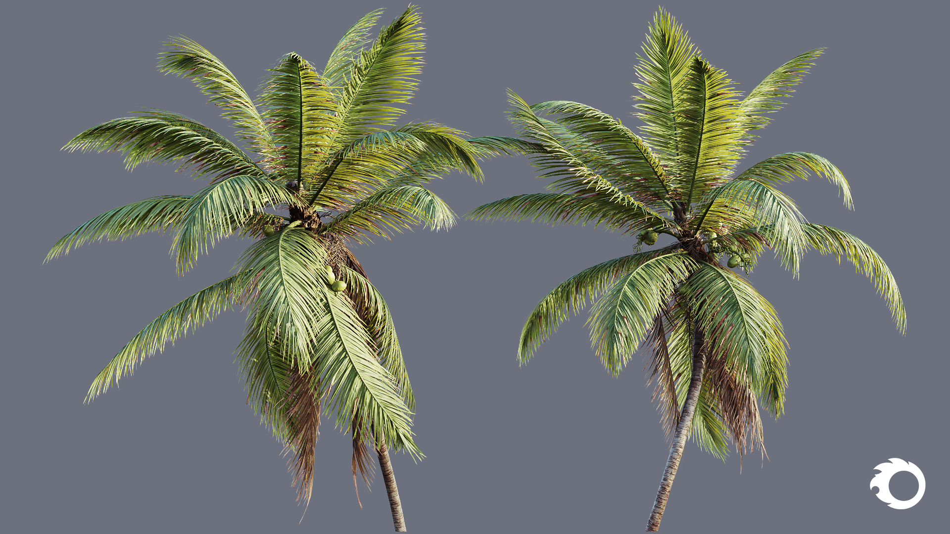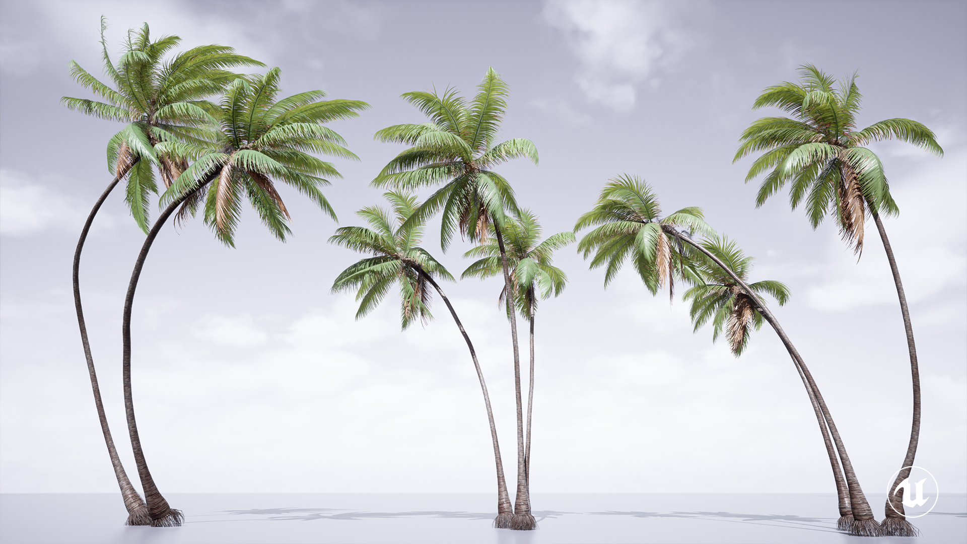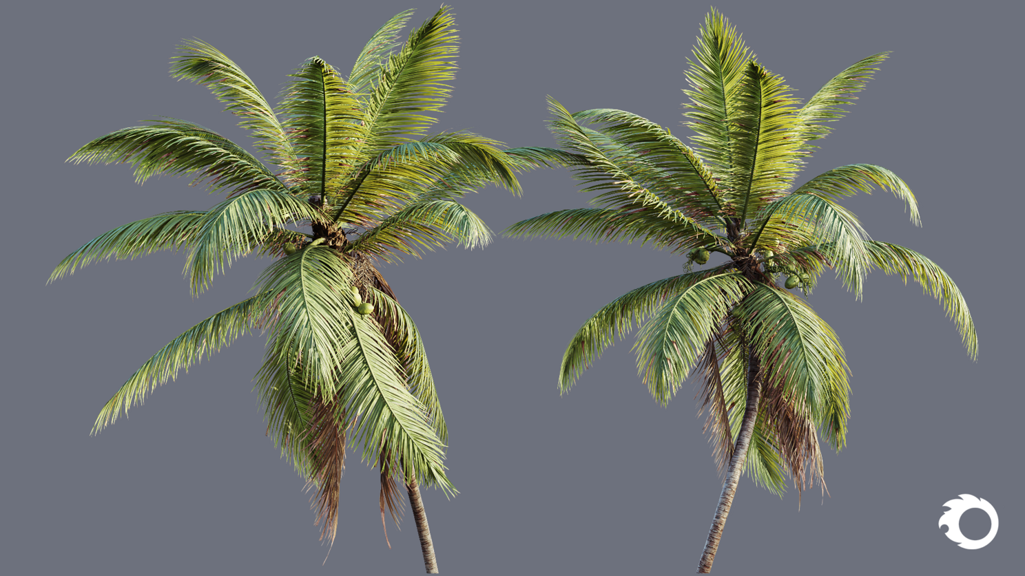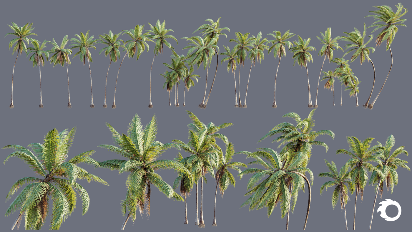 16 high-quality Cocos Nucifera palm tree models, carefully created for realistic environments and professional productions.