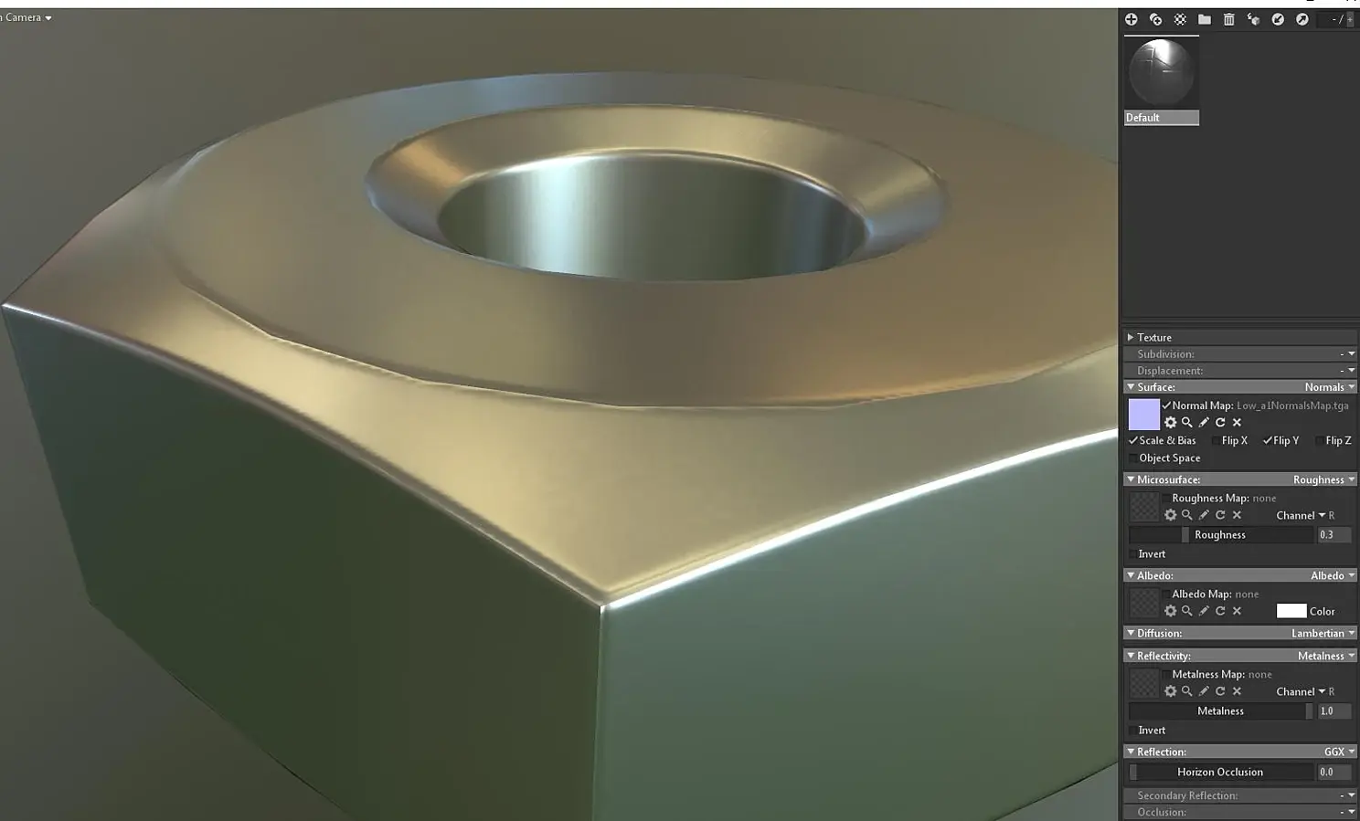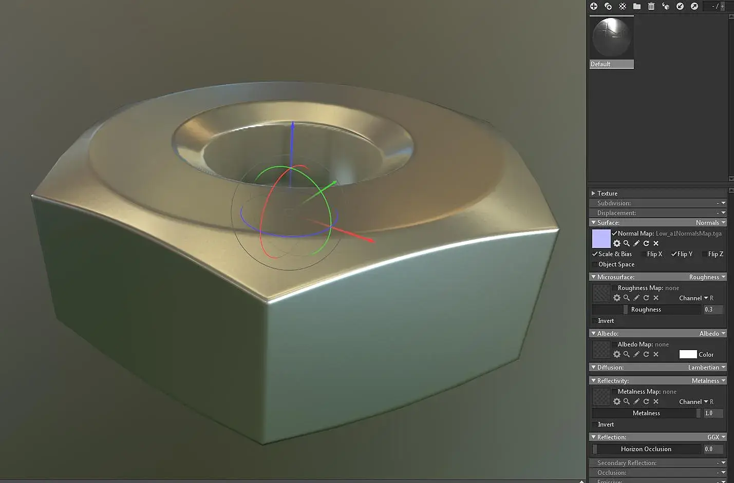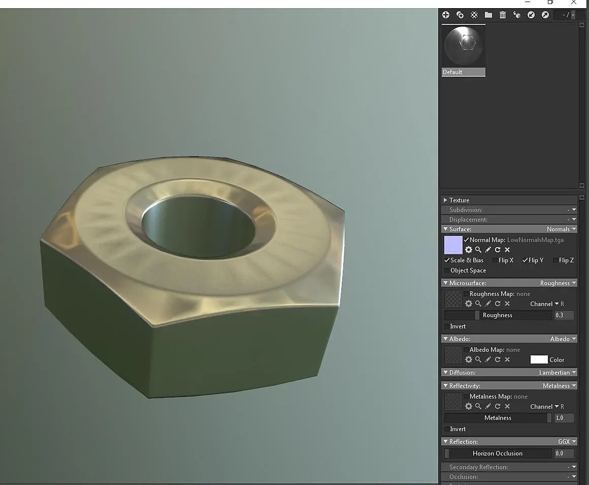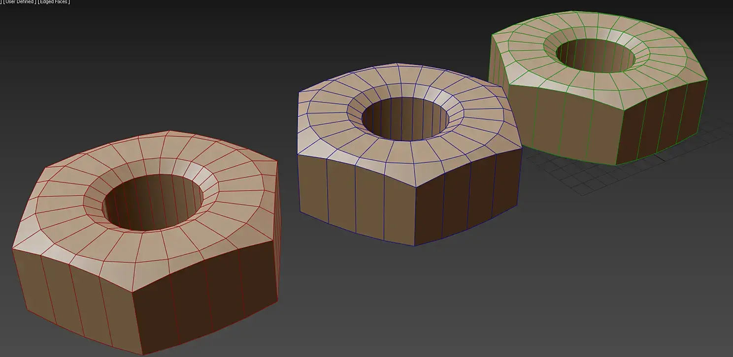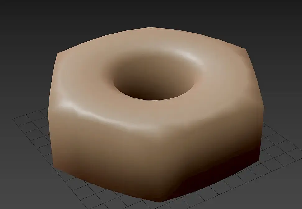 Теперь эксперемента ради рассмотрим третий способ возьмём третью гайку Low_a2, повторим действия с хард эджами и накинем на неё развёртку от гайки Low, что получится? И так ли важна развёртка?