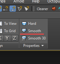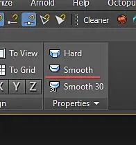 Итак 1 способ который предлагался в теме на форуме: Это запекание карты нормалей с единственной группой сглаживания и с развёрткой имеющей минимальное количество швов. Для этого выделяем объект Low, нажимаем на кнопку Smoth, панели Ribbon: